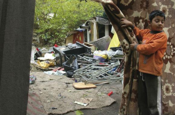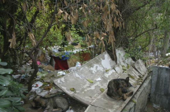 Όσο προχωράμε πιο βαθιά μέσα στην παραγκούπολη ο θόρυβος των αυτοκινήτων σχεδόν χάνεται και μέσα από τις φυλλωσιές μόλις που διακρίνονται οι σύγχρονες πολυκατοικίες. Περπατάμε πάνω σε λάσπη ανακατεμένη με σκουπίδια. Μια μικρή γεννήτρια δίνει ρεύμα στους σημερινούς «ενοίκους» που εγκαταστάθηκαν στην κοίτη του ρέματος. Σε σπαστά ελληνικά λένε ότι ήρθαν από τη Βουλγαρία και την Αλβανία. Οικογένειες με τρία και τέσσερα παιδιά μας λένε πως δεν έχουν κανένα μέλλον στη χώρα τους και κινούνται μέσα στα θολά νερά της παρανομίας και της νομιμότητας. «Δουλεύουμε όπως μπορούμε για να ζήσουμε. Από τη Βουλγαρία περνάμε νόμιμα, δεν είμαστε παράνομοι.