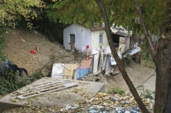 Δεν ξέρουμε πώς να ζητήσουμε βοήθεια», λένε. Το ηλεκτρικό ρεύμα έχει κοπεί εδώ και χρόνια όταν το κράτος αποζημίωσε τους παλιούς κατοίκους για να εγκαταλείψουν τα σπίτια τους με την προοπτική το ρέμα να κλείσει και να γίνει δρόμος που θα ενώνει την Τριανδρία με τη Ν. Εγνατία. Τρεχούμενο νερό δεν υπάρχει πουθενά και η δυσοσμία τρυπάει τα ρουθούνια. Χρησιμοποιούν τις παλιές τουαλέτες των σπιτιών που βρήκαν εκεί, αλλά είναι φανερό ότι αυτό δεν αρκεί. Άσπρα πλαστικά δοχεία, καμιά δεκαριά περίπου, βρίσκονται έξω από κάθε σπίτι.