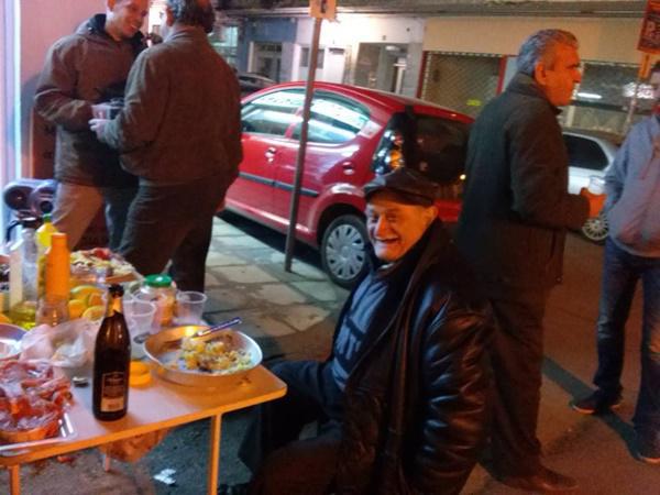 Χθες, καθώς επιστρέφαμε από μια δύσκολη και γεμάτη μέρα την ώρα που σουρούπωνε, ο Λευτέρης κι ο Σωτήρης μας έφτιαξαν πάλι τη διάθεση: στα ξαφνικά η γειτονιά συμμετείχε σε ένα μικρό γλέντι, με φαΐ και ποτό για κάθε ηλικία, μπροστά στο μαγαζάκι.