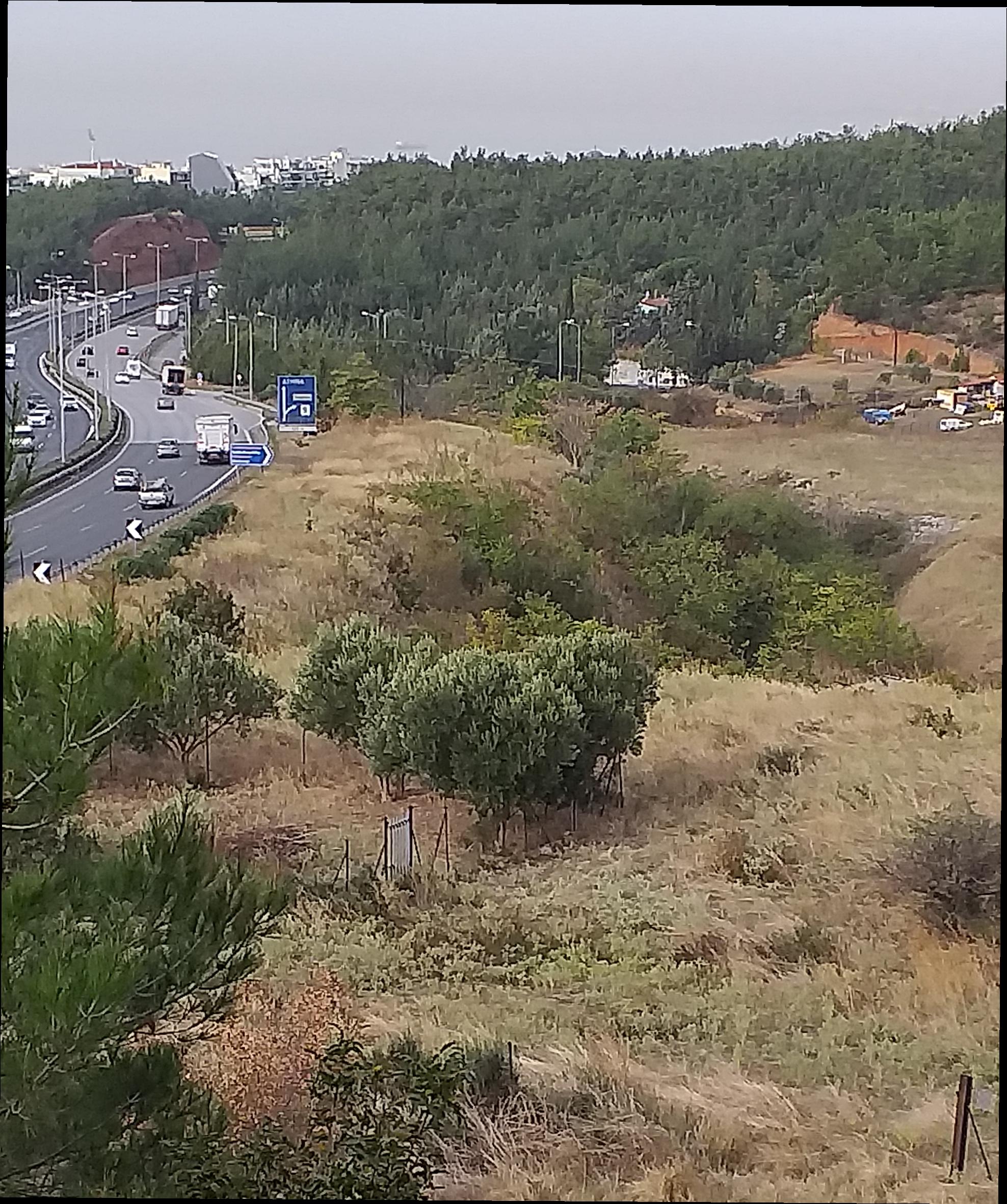 Στο σημείο ακριβώς επάνω από τον κόμβο Κ10 συμβάλλουν οι τρεις κύριοι ορεινοί κλάδοι του χειμάρρου από το Σέιχ Σου. Η περιοχή είναι στα όρια του περιαστικού δάσους, η περίφραξη του οποίου ξεκινά λίγο πιο πάνω. Έχει μπαζωθεί και αυτή κατά τη δεκαετία του 1980, και επικρατεί μια περίεργη κατάσταση. Στην κοίτη του πρώτου, βορειότερου και μικρότερου, ορεινού κλάδου έχει κατασκευαστεί, πιθανότατα την ίδια χρονική περίοδο, χώρος δασικής αναψυχής, με γήπεδο ποδοσφαίρου και μπάσκετ, ο οποίος είναι εντελώς εγκαταλειμμένος σήμερα, η βλάστηση έχει αναπτυχθεί και κανείς δεν μπορεί να αθληθεί, ακόμη και να ήθελε!