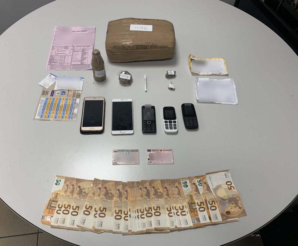 Λίγο αργότερα την ίδια ημέρα εντοπίσθηκε στην περιοχή του Ωραιοκάστρου ο 53χρονος και σε έρευνα που πραγματοποιήθηκε, εντοπίσθηκαν στην κατοχή του, καθώς και σε δωμάτιο ξενοδοχείου στο οποίο διέμενε: 3 δέματα ακατέργαστης κάνναβης συνολικού βάρους 1.162 γραμμαρίων, 1 μικρόδεμα κατεργασμένης κάνναβης βάρους 43,7 γραμμαρίων, 1 αυτοσχέδιο τσιγάρο κάνναβης, 1 Δελτίο Αστυνομικής Ταυτότητας και 1 άδεια ικανότητας οδήγησης Βουλγαρικών Αρχών, Το χρηματικό ποσό των 1.200 ευρώ και 3 κινητά τηλέφωνα, που χρησιμοποιούσε για τις παράνομες συναλλαγές του.