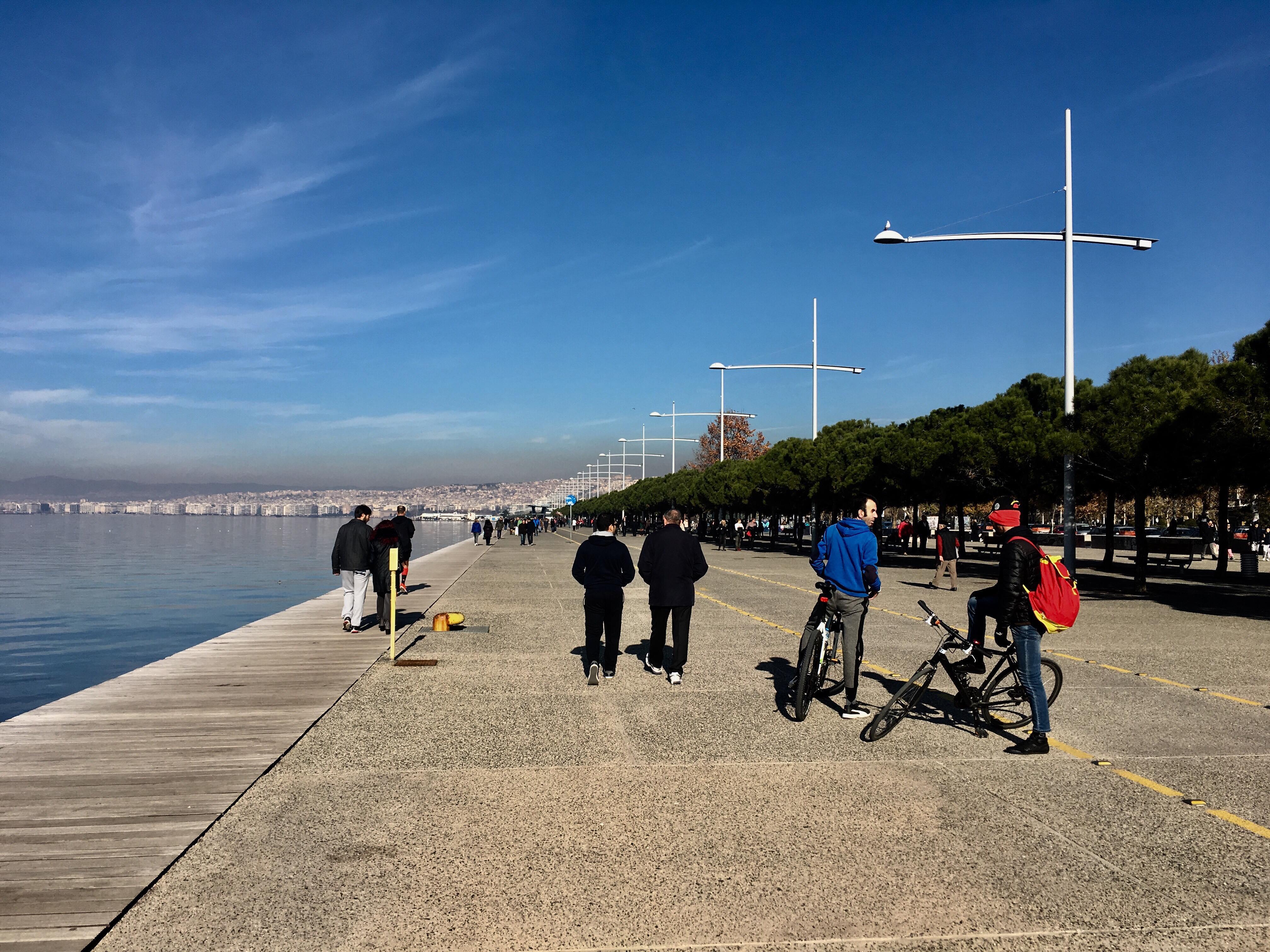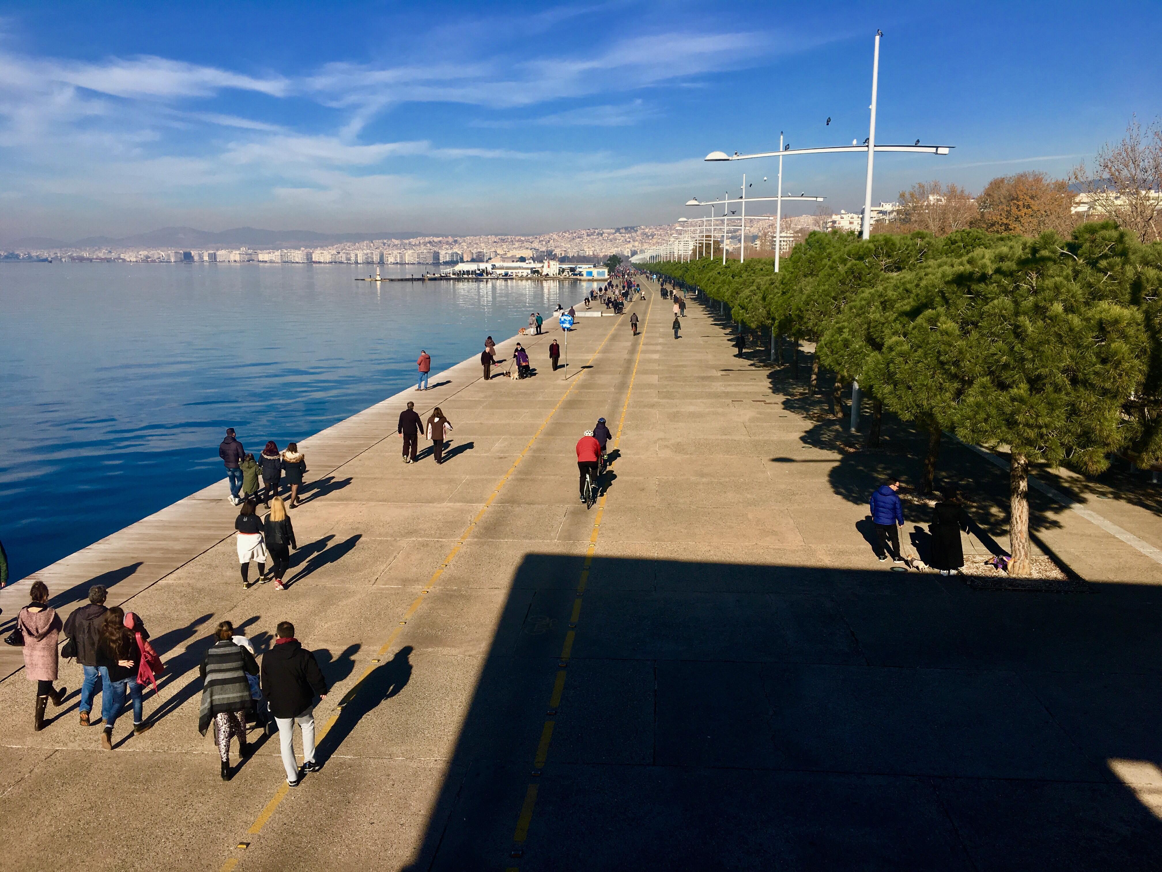 Η μέρα ήταν ηλιόλουστη, η νέα χρονιά ξεκίνησε με καλό καιρό, από νωρίς το πρωί, το δημοφιλέστερο σημείο της πόλης γέμισε κόσμο. Η πρώτη βόλτα της χρονιάς ήταν μια από τις πολυπληθέστερες. Χιλιάδες κόσμου θεώρησαν γούρι τους να περπατήσουν τη νέα παραλία. Το καμάρι της πόλης τους. Ανάμεσα τους πάρα πολλοί τουρίστες που απόλαυσαν τον δυνατό πρωϊνό ήλιο. Μαζί τους και πολλά τετράποδα και πάπιες που κολυμπούσαν στο Θερμαϊκό. Και του χρόνου.