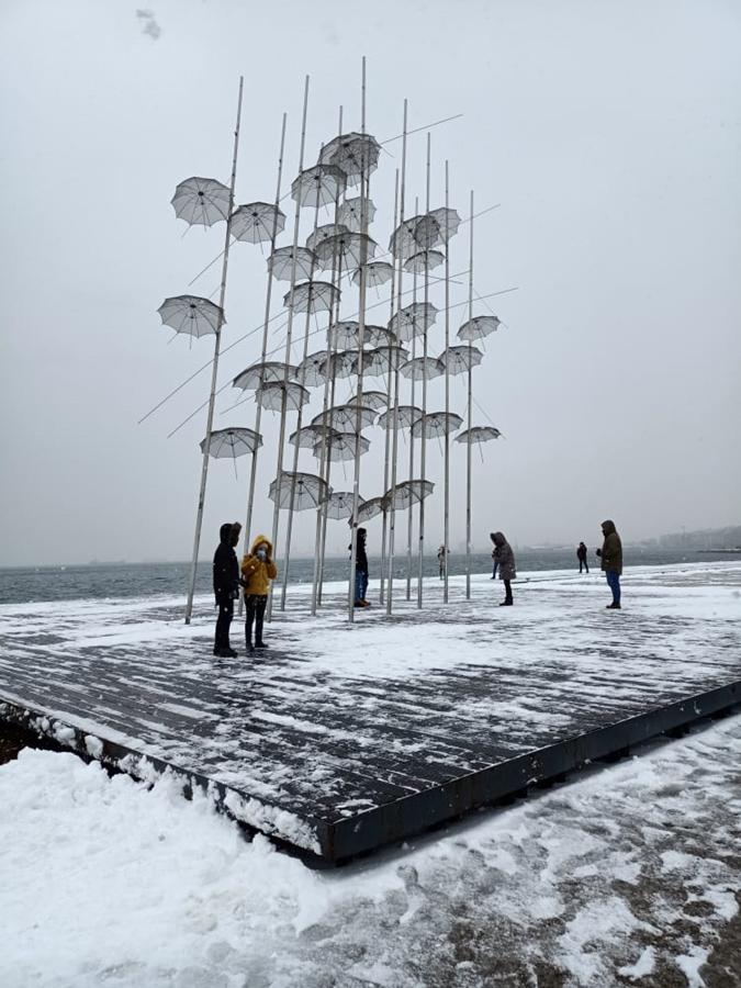 Ακόμα πιο τυχεροί, όμως, στάθηκαν εκείνοι που αγαπούν. Διότι αυτοί, ως φαίνεται, ξεχύθηκαν στην πόλη και έζησαν ανήμερα του Αγίου Βαλεντίνου τον χιονισμένο τους έρωτα.