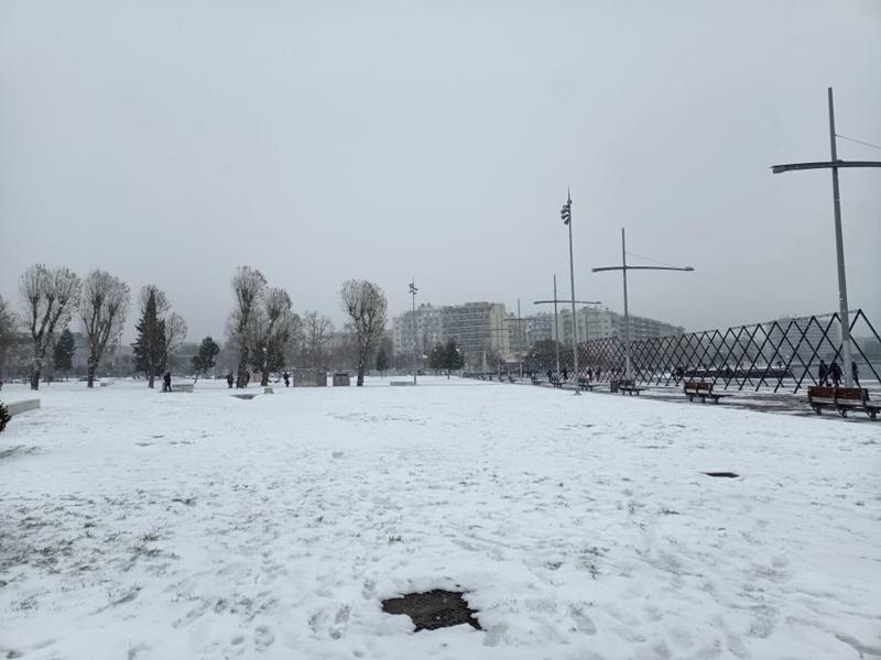 Ένα κατάλευκο τοπίο αντίκρισαν από κοντά σήμερα όσοι βγήκαν από το σπίτι για να απολαύσουν τον καθιερωμένο κυριακάτικο περίπατο.