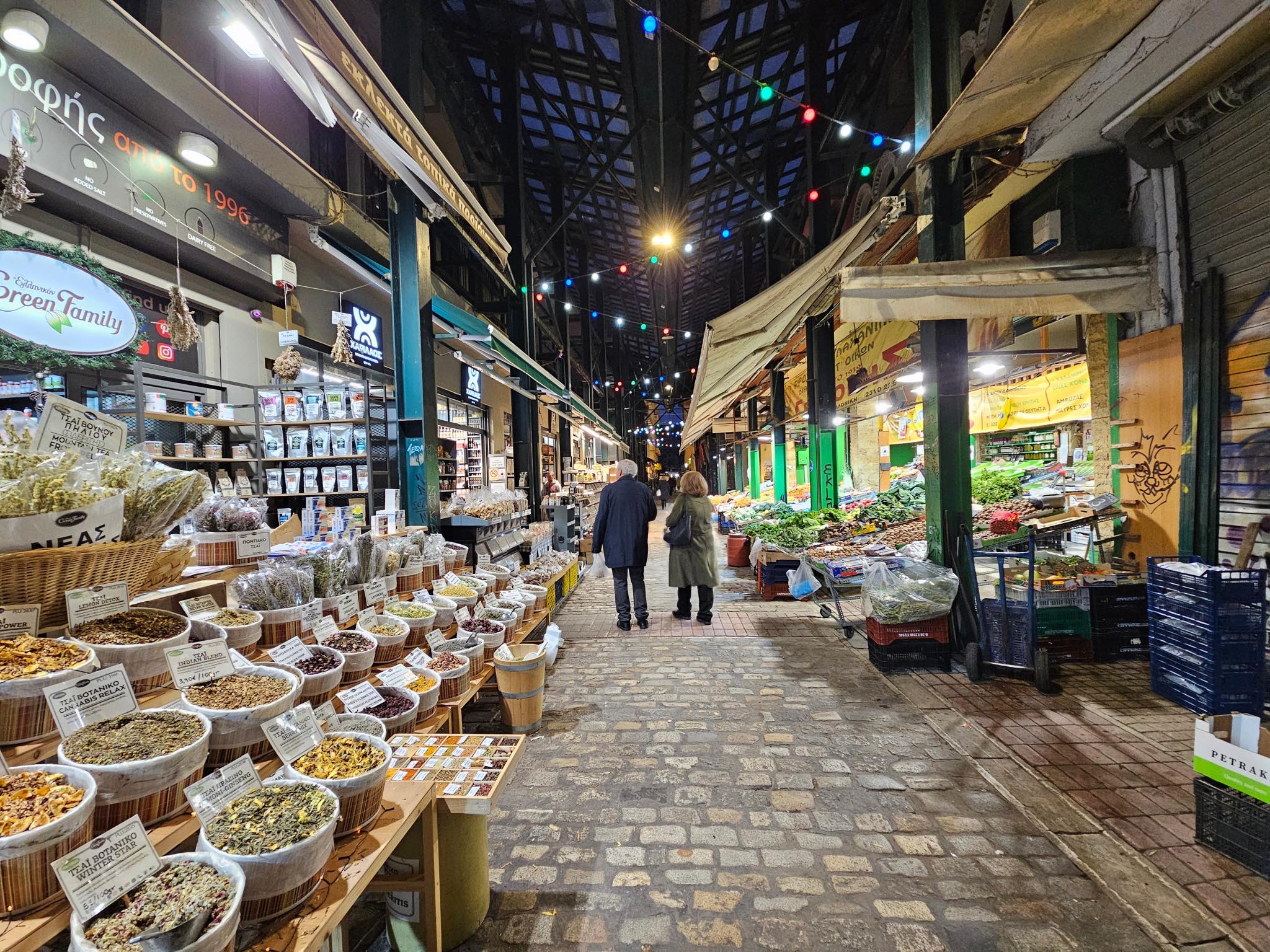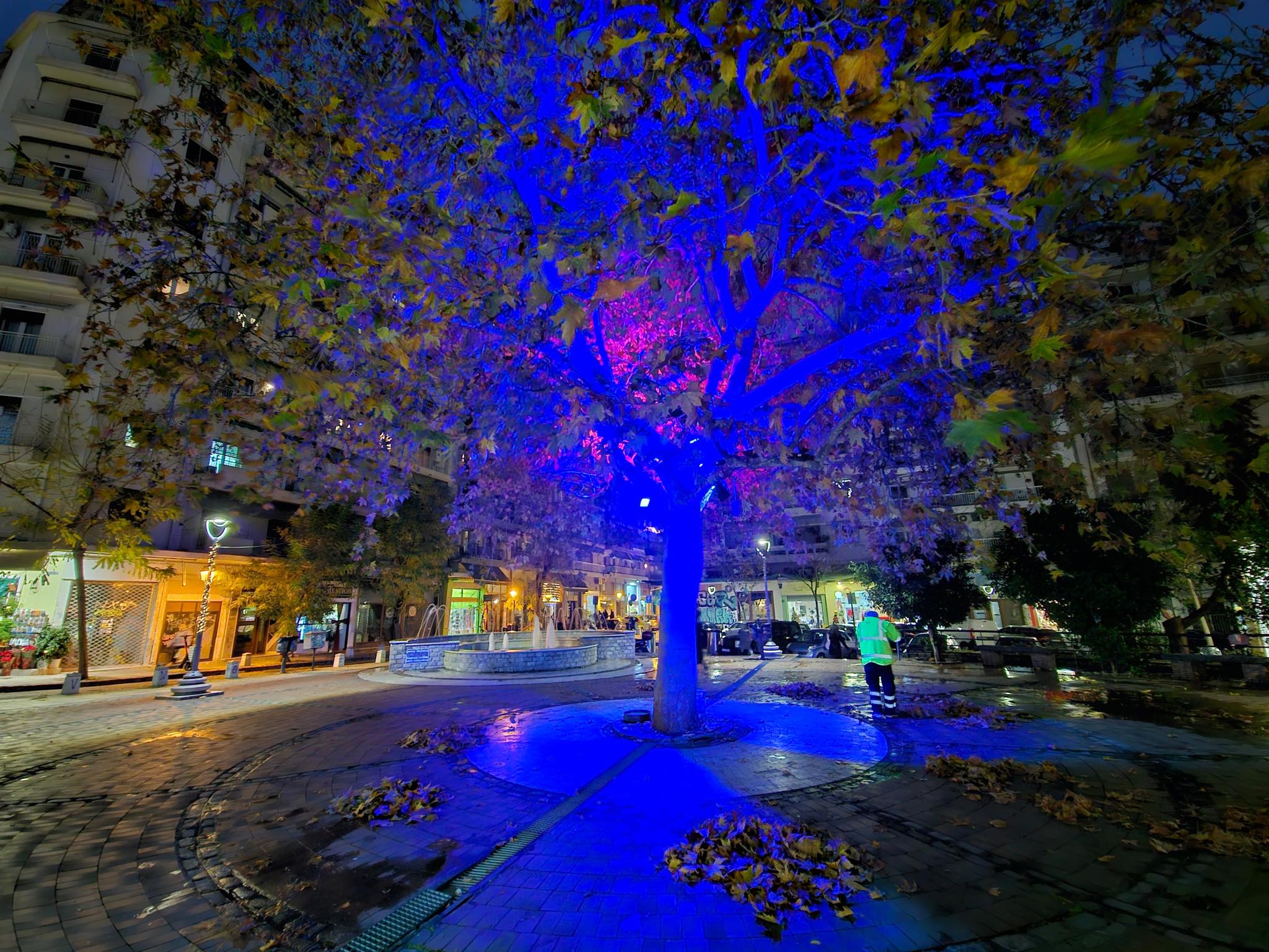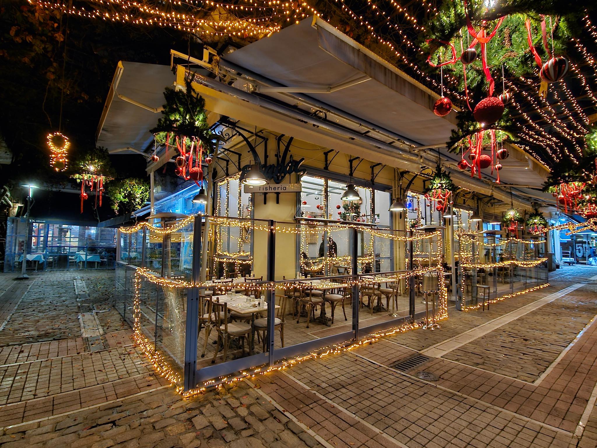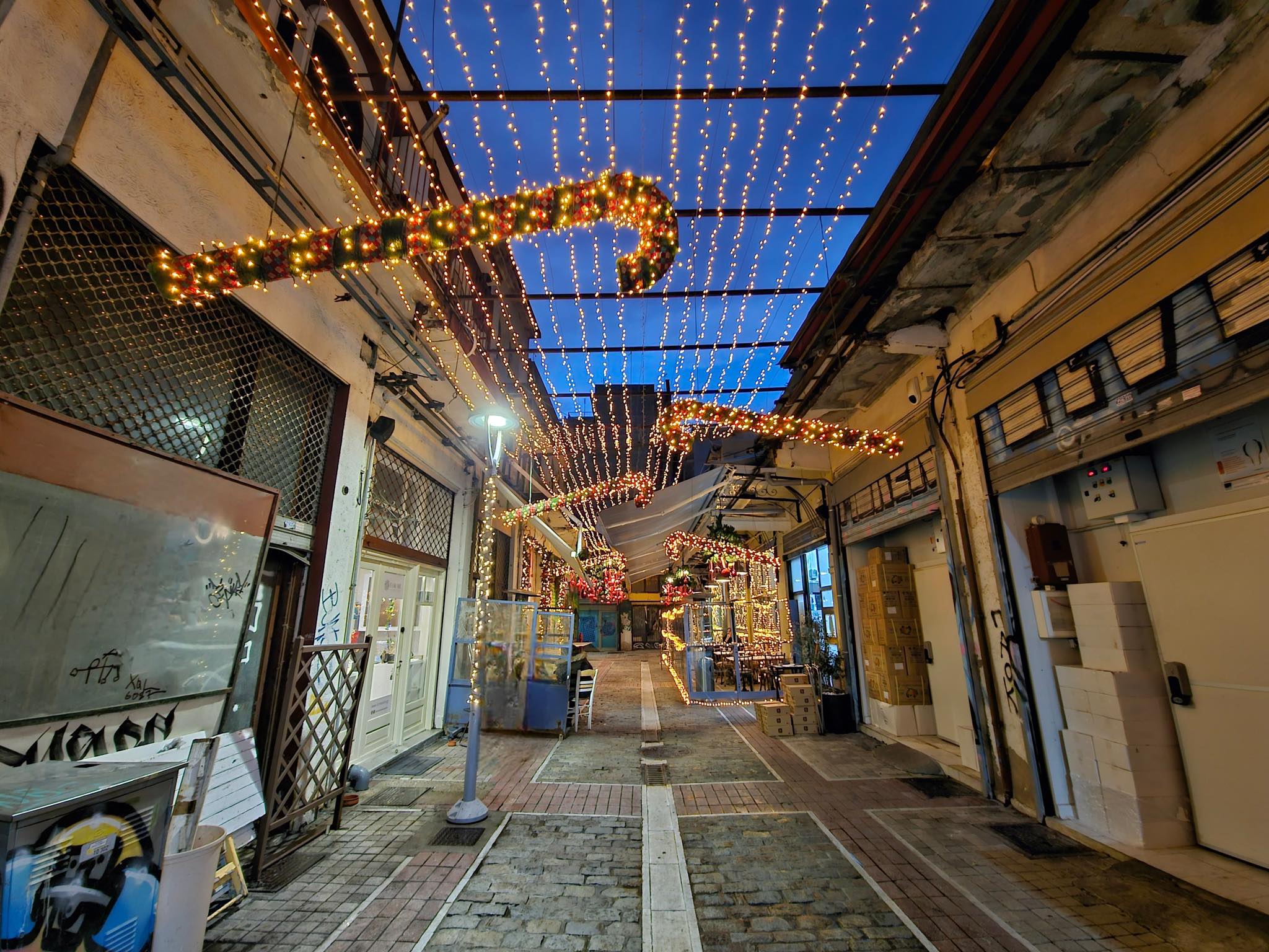 Χριστουγεννιάτικη ατμόσφαιρα στην πλατεία Άθωνος, δυο βήματα από τη στάση του Μετρό