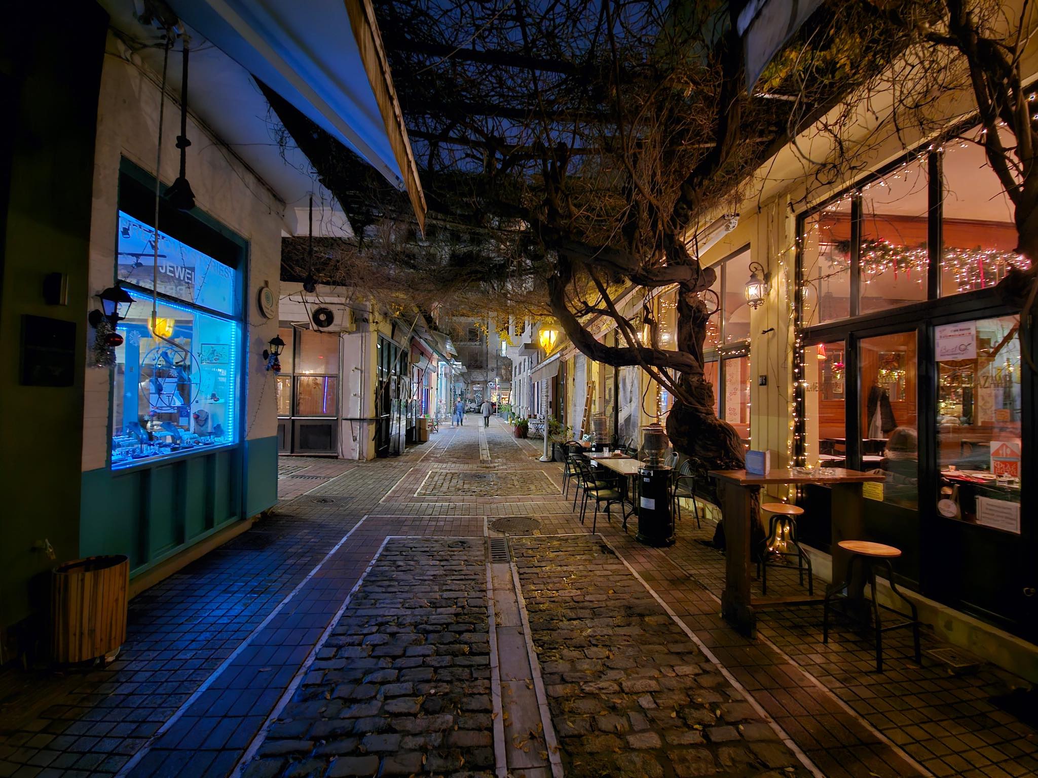 Η μαγική μεσοπολεμική χριστουγεννιάτικη ατμόσφαιρα της πλατείας με τα στενά δρομάκια που απλώνονται γύρω της, σ’ αφήνουν να ταξιδέψεις σ’ έναν κόσμο μαγικό.