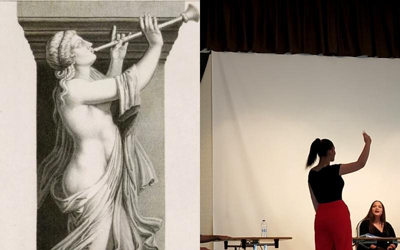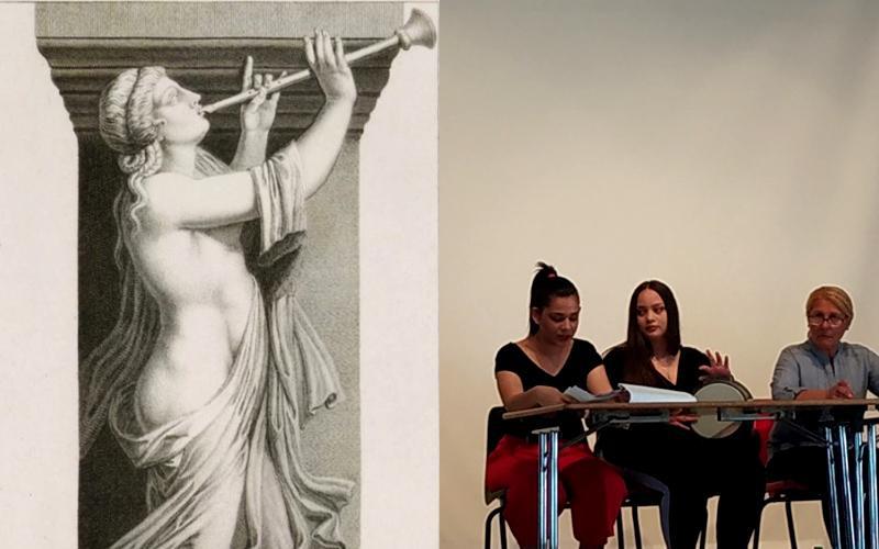 Οι γυναίκες του κοινού ένωσαν τις φωνές τους με αυτές των νεαρών κοριτσιών που ερμήνευσαν τρία χορικά τραγούδια στη Ρομανί, κρατώντας παράλληλα το ρυθμό με παλαμάκια. Κατά τη διάρκεια της ανάγνωσης, τα χτυπήματα στο τουμπελέκι συνόδευαν σε ορισμένα σημεία τον λόγο, ενώ η μετάφραση μίας από τις φράσεις του κειμένου στη γλώσσα τους προκάλεσε γέλιο στους Ρομά θεατές.