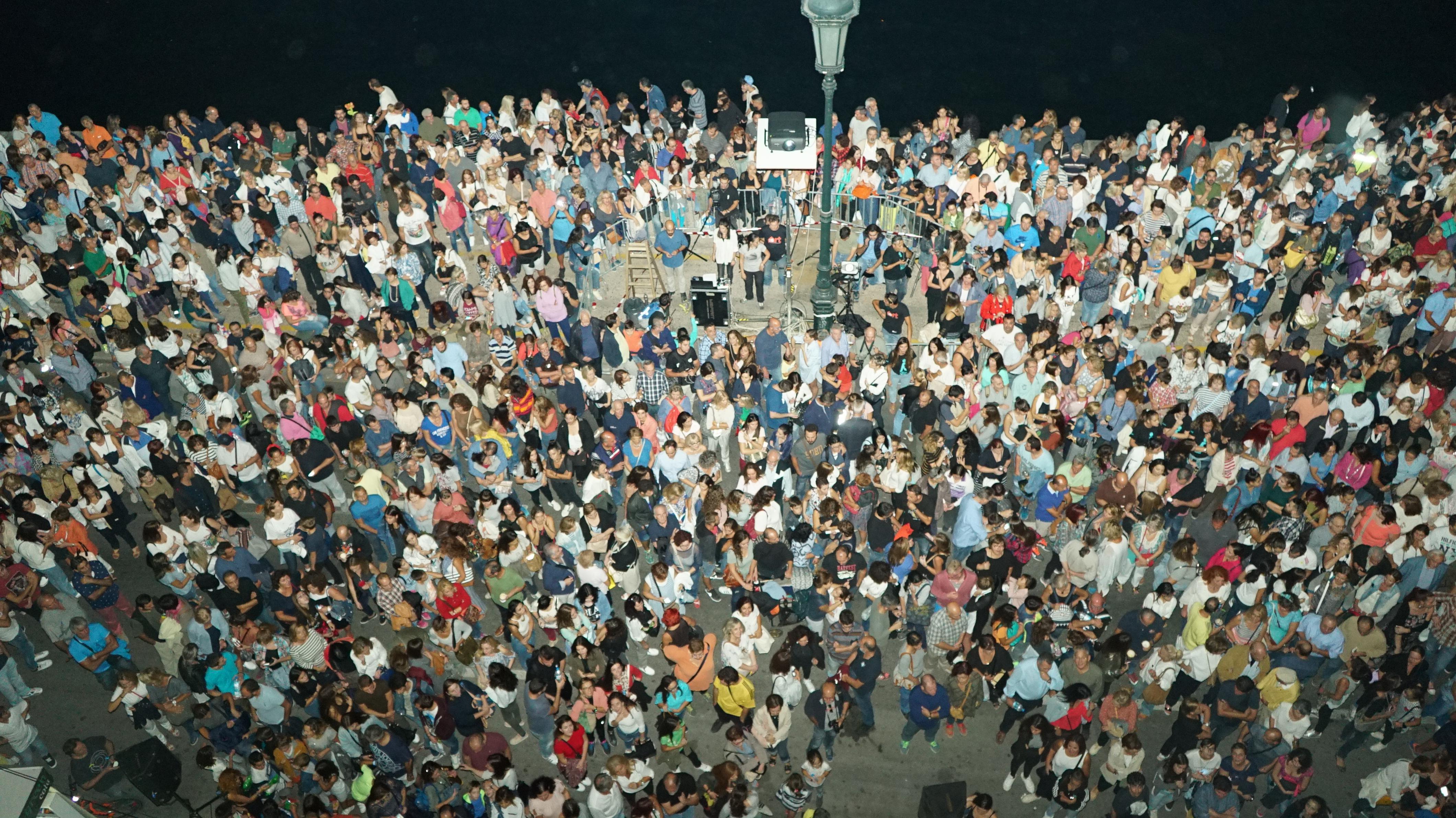 Μια διαφορετική όψη της δράσης “Έγινε η σπίθα πυρκαγιά” της parallaxi δίνουν οι εικόνες από ψηλά. Το πλήθος του κόσμου στις οδούς Εδέσσης και Λ. Νίκης με την αποτύπωση του φακού το βράδυ της 23ης Σεπτεμβρίου 2017.