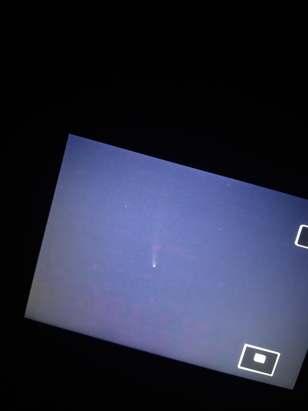 Σάββατο 11 Ιουλίου. Χάσαμε τον κομήτη του ξημερώματα Σαββάτου, οπότε κανονίσαμε να τον δούμε ξημερώματα Κυριακής. Αποφασίσαμε να μην κοιμηθούμε, να πάμε από νωρίς στο Μέγαρο, για να στήσουμε το τρίποδο και να προσπαθήσουμε να τον εντοπίσουμε και να τον φωτογραφίσουμε. Μιας που δεν είχαμε κάποιο μέσο μεταφοράς αρκεστήκαμε στο να τον δούμε μέσα από την πόλη παρά την φωτορύπανση. Φτάσαμε κατά τις 4, ο κομήτης ανέτειλε 4 και μισή. Στήσαμε και περιμέναμε. Μπερδεύαμε αστέρια με τον κομήτη, ενθουσιαζόμασταν με ένα λάθος κοίταγμα. Μέχρι που ήρθε το σωστό. Αν και αχνός τον βλέπαμε. Και δώστου φωτογραφίες, και τα επιφωνήματα «να’ τος, να’ τος!». Νιώθεις δέος κοιτώντας τον ουρανό. Καταλαβαίνεις πόσο μικροί είμαστε, αλλά και πόσο τυχεροί που έχουμε την δυνατότητα να δούμε και να θαυμάσουμε όλα αυτά. Ο συγκεκριμένος κομήτης θα είναι ορατός ξανά μετά από 7.000 χρόνια. Το ξημέρωμα στην παραλία ήταν μαγικό και άξιζε τον κόπο.