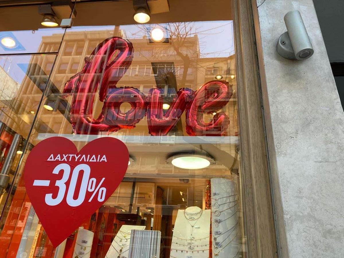 Η Θεσσαλονίκη είναι πάντοτε πόλη ερωτική. Σήμερα, όμως, λίγο περισσότερο. Ημέρα του Αγίου Βαλεντίνου, λοιπόν. Και το κέντρο της πόλης έχει “ντυθεί” αναλόγως. Όπου και αν στρέψεις το βλέμμα σου θα δεις κόκκινα μπαλόνια, καρδιές και λουλούδια να κοσμούν τις βιτρίνες των καταστημάτων. Λες και ο φτερωτός θεός επέστρεψε για λίγο στην πατρίδα του.