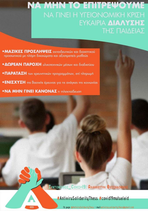 COVID-19: Αλληλεγγύη Θεσσαλονίκης: Τα αιτήματα του μαθητικού, φοιτητικού και εκπαιδευτικού κινήματος