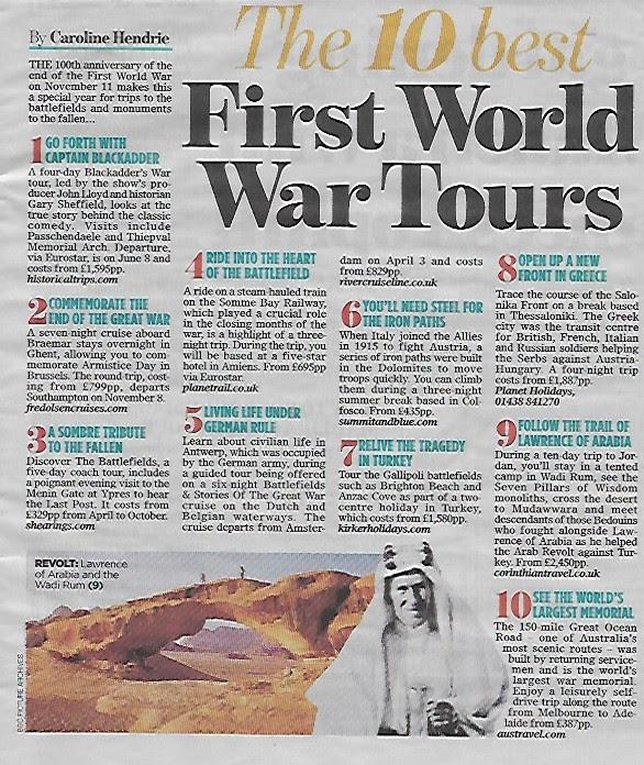 Τα μνημεία του Α’ Παγκοσμίου Πολέμου στη Θεσσαλονίκη και το Κιλκίς φαίνεται πως προσέλκυσαν το ενδιαφέρον Βρετανικών ταξιδιωτικών οργανισμών, που τα ενέταξαν στα προγράμματά τους.