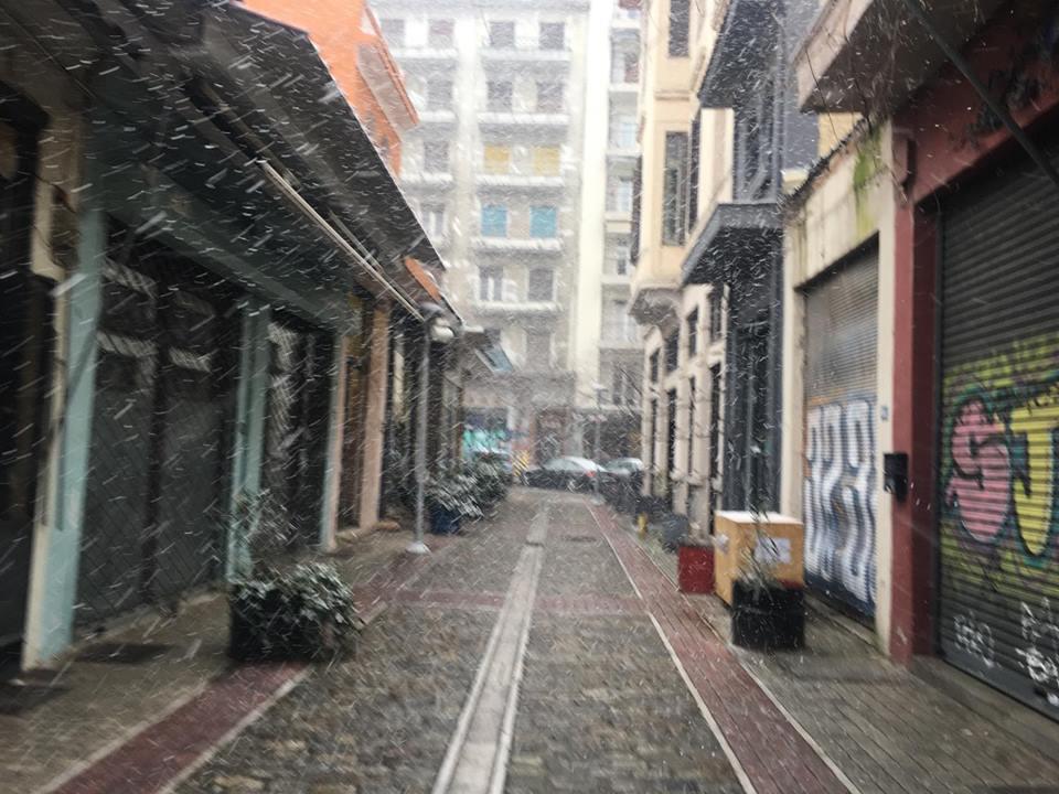Πυκνές νιφάδες στο κέντρο της πόλης τώρα.