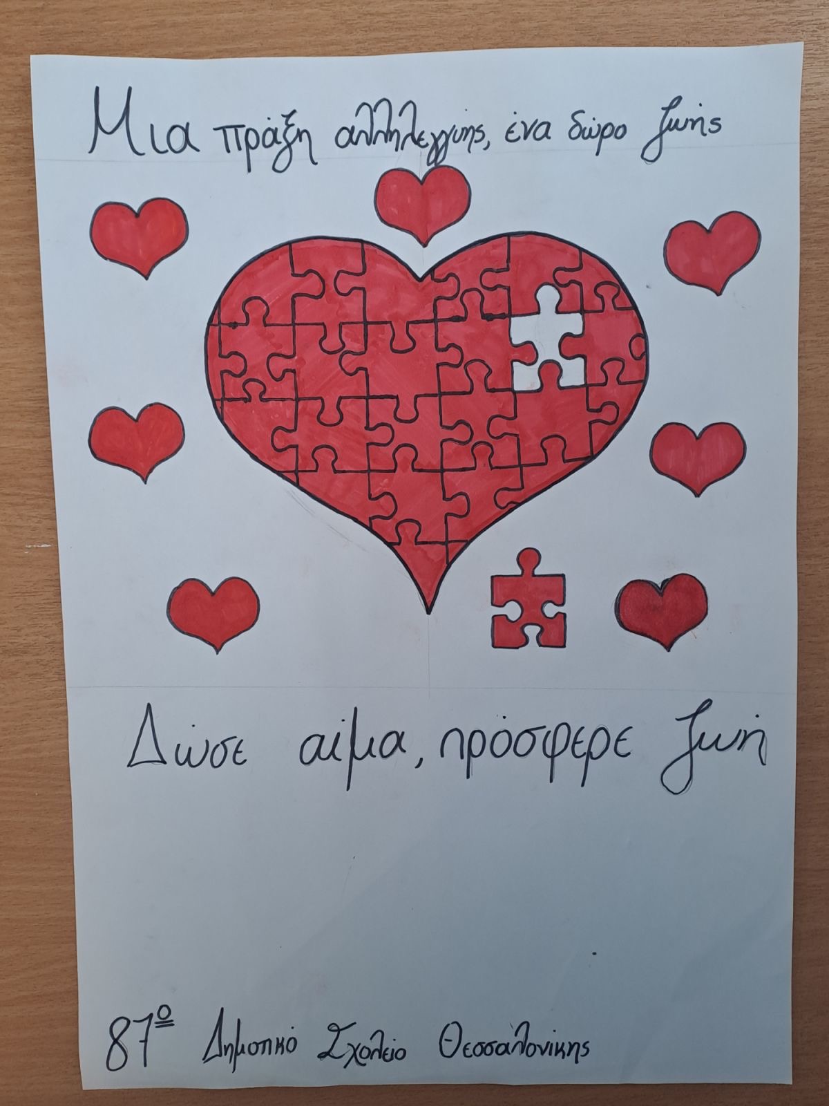 *Τις φωτογραφίες από τα πρότζεκτ των μαθητών για την εθελοντική αιμοδοσία παραχώρησε στο ΑΠΕ-ΜΠΕ ο Σύμβουλος Εκπαίδευσης Δασκάλων 6ης Θέσης της Διεύθυνσης Π.Ε. Ανατολικής Θεσσαλονίκης, Δημήτρης Σιδηρόπουλος