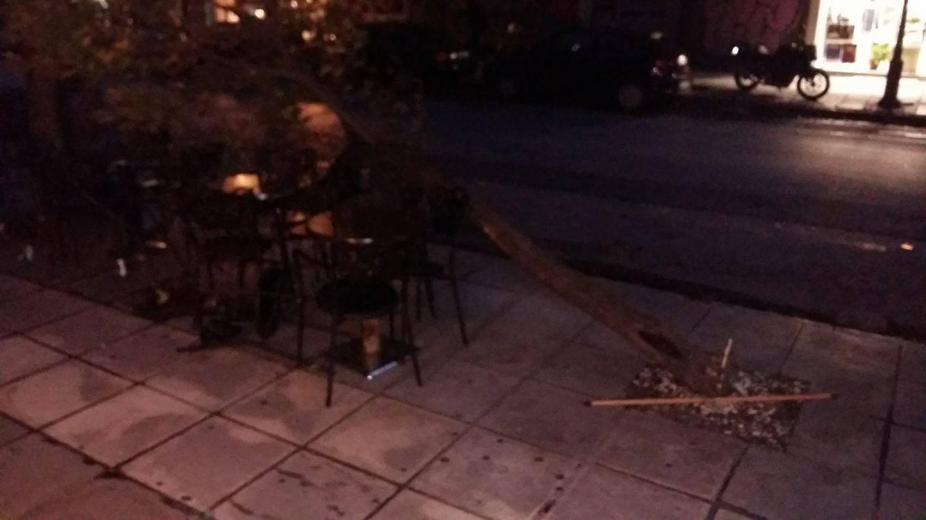 Η πυροβεστική κλήθηκε να απομακρύνει τα δέντρα από τα πεζοδρόμια και τα παρκαρισμένα αυτοκίνητα που υπέστησαν ζημιές.