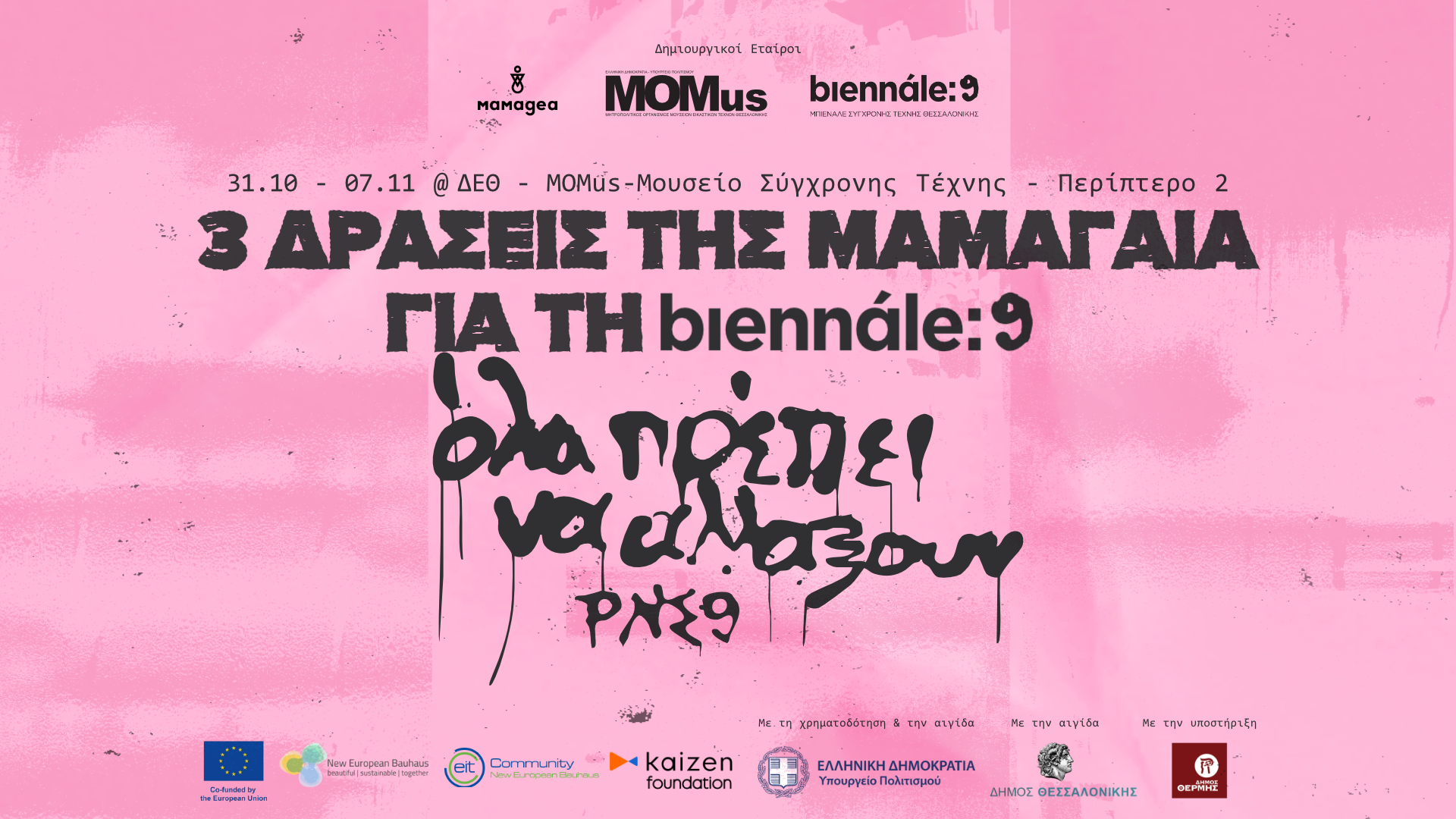 Η εικαστική έκθεση “WONDER CITY: Planting our urban present together” προτάσσει τα παιδιά ως πολιτιστικούς παραγωγούς (children as cultural producers) φιλοξενώντας έργα σχολικών κοινοτήτων για την πόλη του σήμερα, που προσεγγίζουν θέματα δημιουργίας και συμμετοχικής φροντίδας σχολικών λαχανόκηπων, καλλιέργειας της τροφής στο σχολείο και της σχέσης μας με την κοινότητα. Εγκαίνια: Σάββατο 01 Νοεμβρίου, 17.00-19.00. Διάρκεια έκθεσης: Σάββατο 1/11 – Παρασκευή 07/11. Στον 1ο όροφο του MOMus-Μουσείο Σύγχρονης Τέχνης. Οι “Συνδαιτυμόνες” αποτελούν ένα γεύμα/συζήτηση με καλεσμένους εκπροσώπους του Δικτύου Σχολικών Λαχανόκηπων Θεσσαλονίκης. Με αφετηρία τις προσωπικές σχολικές αναμνήσεις και τις εμπειρίες τους, οι Συνδαιτυμόνες καλούνται να αποτυπώσουν για πρώτη φορά με δημιουργικό τρόπο τις αξίες, την αποστολή και το όραμα του Δικτύου Σχολικών Λαχανόκηπων, αναζητώντας έτσι πιο δίκαια και βιώσιμα διατροφικά μέλλοντα μέσα από την εκπαίδευση και το σχολείο. Σάββατο 01/11 18.30-20.30, στο MOMus-Μουσείο Σύγχρονης Τέχνης. Οι δράσεις της Μαμαγαία στο πλαίσιο της 9ης Μπιενάλε Θεσσαλονίκης πραγματοποιούνται μέσα από τη συνέργεια των έργων PLANT, που χρηματοδοτείται από το πρόγραμμα CONNECT – New European Bauhaus 2025, του προγράμματος WONDER Schools, που υποστηρίζεται από το Kaizen Foundation και με την υποστήριξη του Δήμου Θέρμης. Η υλοποίηση των δράσεων πραγματοποιείται με την οικονομική υποστήριξη του Υπουργείου Πολιτισμού και τελεί υπό την αιγίδα του Υπουργείου Πολιτισμού καθώς και του Δήμου Θεσσαλονίκης. Για την 9η Μπιενάλε Σύγχρονης Τέχνης Θεσσαλονίκης: Η Μπιενάλε Σύγχρονης Τέχνης Θεσσαλονίκης με την 9η διοργάνωσή της επιχειρεί μια νέα θεώρηση του θεσμού και αναδομείται χωροταξικά και εννοιολογικά. Διερωτάται τόσο για το ίδιο το αίτημα του «αλλιώς», όπως φαίνεται να διατρέχει τοπικά, αλλά και παγκόσμια τη ζωή και την τέχνη, όσο και για την αντίληψη, το περιεχόμενο, την ανάγκη και τη σημασία της «αλλαγής» γενικότερα, τώρα, αλλά και σε συνδεόμενα με το παρόν σημεία του παρελθόντος. Με τον αμφίσημα κρυπτικό τίτλο «όλα πρέπει να αλλάξουν. ΡΝΣ9», σε επιμέλεια της ανεξάρτητης επιμελήτριας και ιστορικού τέχνης Νάντιας Αργυροπούλου, η 9η Μπιενάλε Σύγχρονης Τέχνης Θεσσαλονίκης θα επιχειρήσει να συνδέσει τη ζωή και την τέχνη με τρόπους απρόσμενους, με χιούμορ και επινοητικότητα, με μη διδακτικό αλλά εναλλακτικά παιδαγωγικό και μαχητικά ευφρόσυνο τρόπο, με σημεία αιχμής όσα κρίνουν το παρόν και διαμορφώνουν ήδη το μέλλον, με προσανατολισμό έναν κόσμο πολλών κόσμων. Η Μπιενάλε 9 ανοίγει στις 31 Οκτωβρίου 2025, με την έκθεση «Ανατροπή (η επιστημονική φαντασία σαν αλλαγή)»/ PlotTwist (the sciencefictionchange) σε συνεργασία με το Φεστιβάλ Κινηματογράφου Θεσσαλονίκης, και με μια ημέρα εκδηλώσεων-νύξεων προς όσα θα εκτυλιχθούν στην πορεία προς την κύρια έκφανσή της τον Μάιο-Ιούνιο-Ιούλιο του 2026. Περισσότερα για την 9η Μπιενάλε εδώ: https://thessalonikibiennale.com