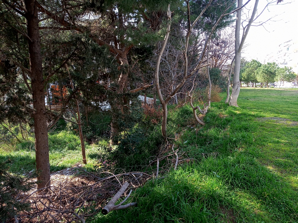 Να σημειωθεί ότι από το το 1971, ο Δήμος Θεσσαλονίκης είχε χαρακτηρίσει το ελεύθερο κομμάτι ως κοινόχρηστο χώρο πρασίνου, ενώ από τις αρχές του 1980 την έκταση διεκδικούν ιδιώτες λόγω χρησικτησίας οι οποίοι δικαιώνονται δικαστικά. Το 2013 η Περιφέρεια αποχαρακτηρίζει την έκταση και το θέμα φτάνει στο ΣτΕ το οποίο από το 2015 διαπιστώνει ότι οι δημοτικές αρχές δεν έχουν χειριστεί με ορθό τρόπο το ζήτημα. «Αυτό που απέμεινε είναι το άνω μέρος του πρανούς. Εμείς επιθυμούσαμε να γίνει χώρος πρασίνου αλλά ο δήμος δεν διαθέτει τους πόρους (σ.σ. περίπου 2,5 εκατ. ευρώ) για να το απαλλοτριώσει» δήλωνε εκπρόσωπος του δήμου Θεσσαλονίκης το 2017.