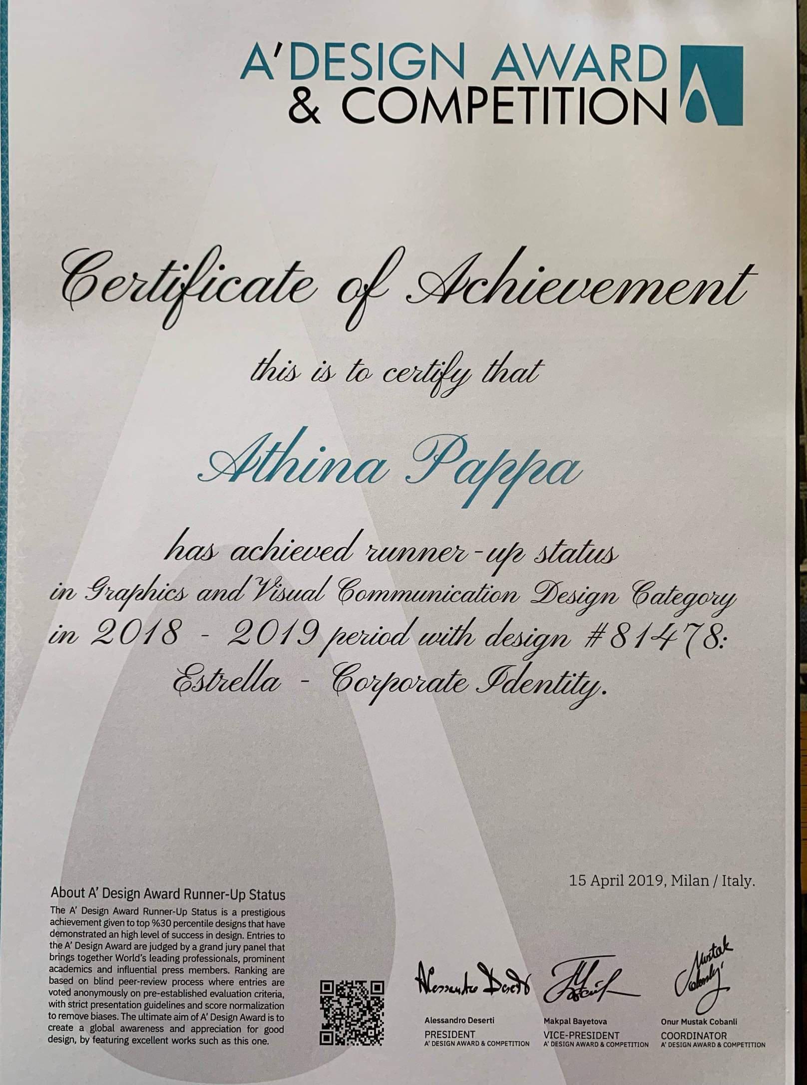 Τα συγχαρητήρια αποδίδονται στην illustrator και designer του Estrella, Αθηνά Παππά, που σε συνεργασία με τον γραφίστα Γιάννη Χατζηιωάννου ολοκλήρωσαν το βραβευμένο πια λογότυπο.