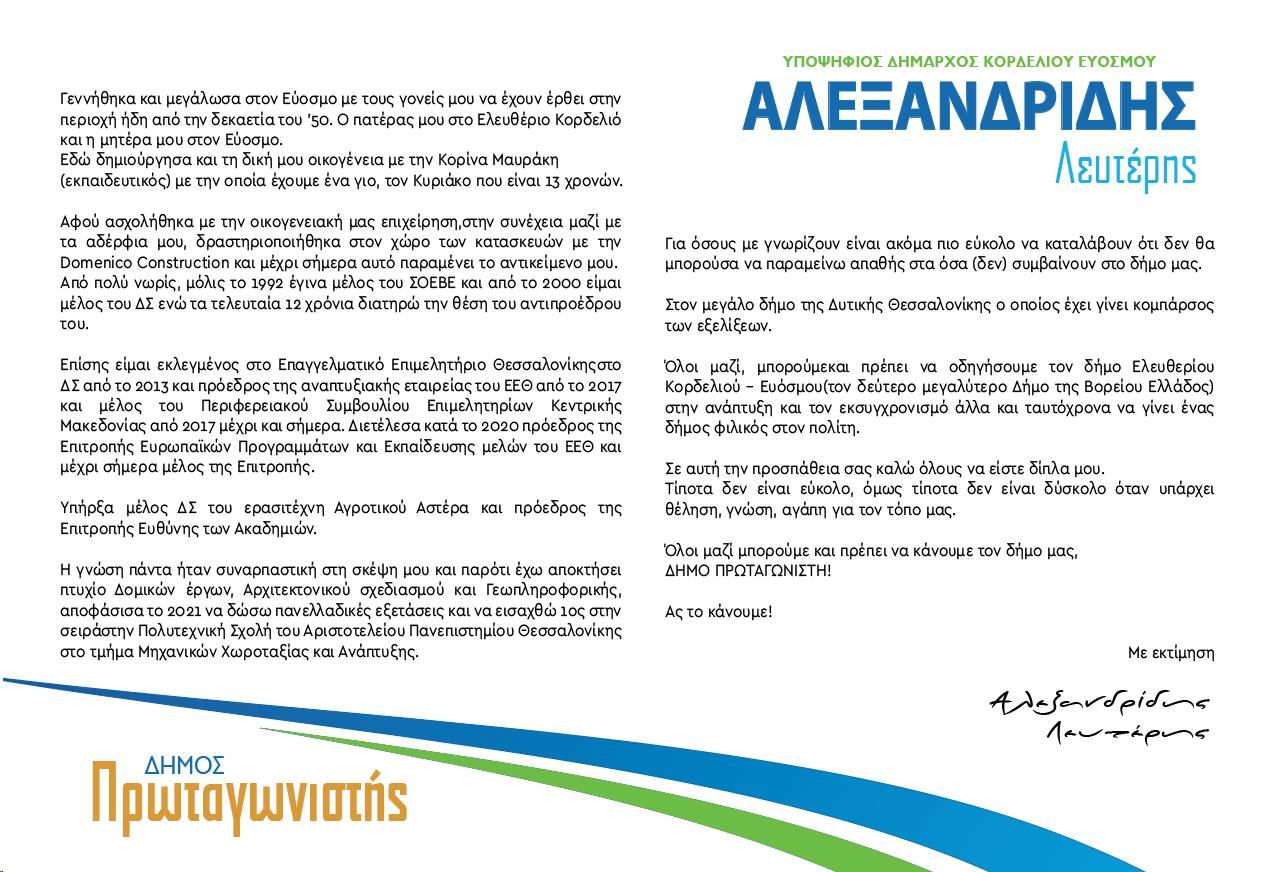 Ο απερχόμενος δήμαρχος Κλεάνθης Μανδαλιάνος παραδίδει από 1η Ιανουαρίου 2024 τη σκυτάλη στον Λευτέρη Αλεξανδρίδη.