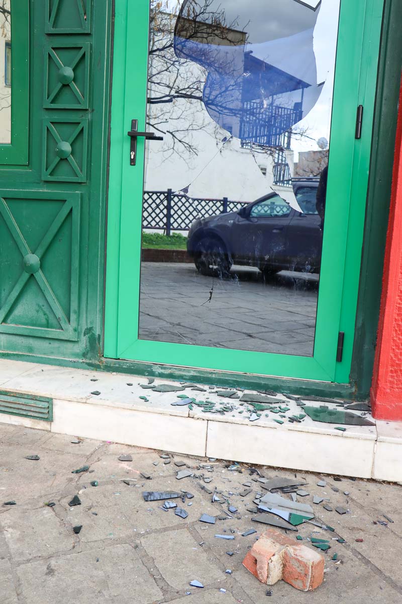 Συγκεκριμένα οι δράστες κατέστρεψαν μία από τις εισόδους της πρώην αίθουσας συνεδριάσεων του δημοτικού συμβουλίου Νεάπολης-Συκεών, δίπλα στο ΚΕΠ Συκεών, σπάζοντας την τζαμαρία εισόδου με υλικά που προηγουμένως απέσπασαν από παρακείμενο παρτέρι.