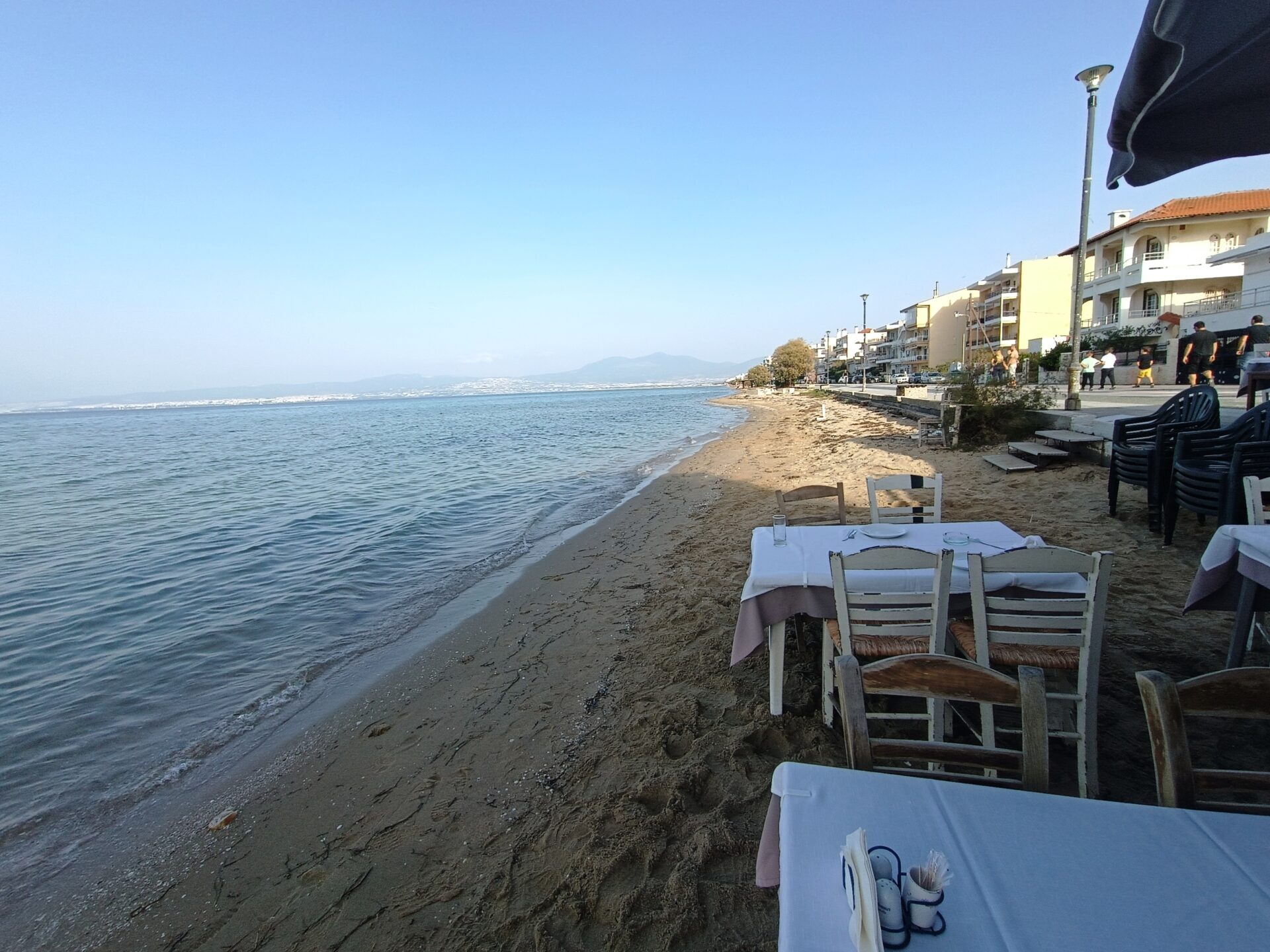 Τα τραπεζοκαθίσματα σε μερικά καταστήματα υγειονομικού ενδιαφέροντος, ταβέρνες και καφετέριες, βρίσκονται κυριολεκτικά πάνω στο κύμα και καταλαμβάνουν σχεδόν όλη την αμμουδιά.