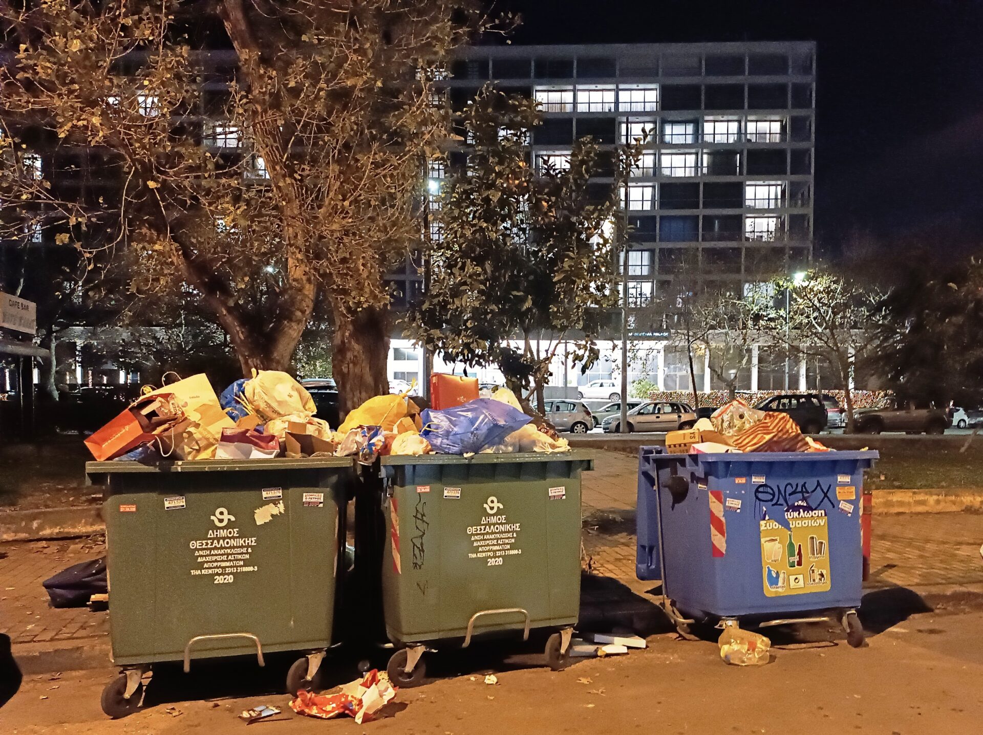 Η κατάσταση με τα απορρίμματα έχει ξεφύγει από κάθε έλεγχο. Σε πολλά σημεία της πόλης οι στοίβες των σκουπιδιών ξεχειλίζουν από τους κάδους και κατακλύζουν πεζοδρόμια και δρόμους, ακόμα και στα πιο κεντρικά σημεία της Θεσσαλονίκης.