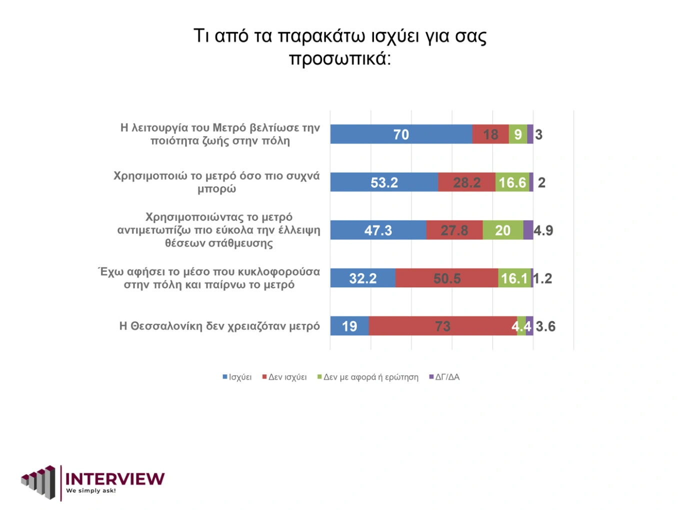 Βελτιωμένη δείχνει τη ζωή στην πόλη μετά τη λειτουργεία του Μετρό, σύμφωνα με δημοσκόπηση της εταιρείας Interview.
