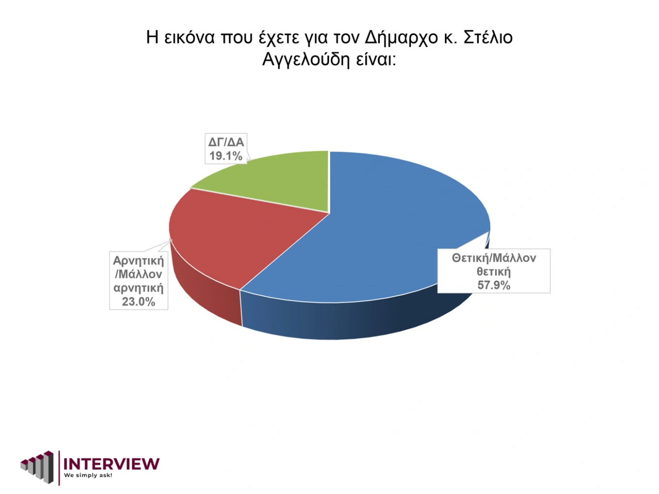 Όμως, η εικόνα για το έργο της δημοτικής Αρχής είναι αρκετά καλή – ο δήμαρχος Στέλιος Αγγελούδης συγκεντρώνει 57,9% θετικών γνωμών, ενώ το 44,5% δηλώνει ικανοποίηση από το έργο της δημοτικής Αρχής.