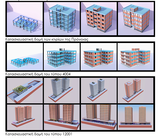 Γενικά όλα τα κτίρια του συγκροτήματος αποτελούν τυπικούς ολόσωμους φορείς από οπλισμένο σκυρόδεμα με αρκετά πυκνό κάνναβο υποστυλωμάτων και δοκών.
