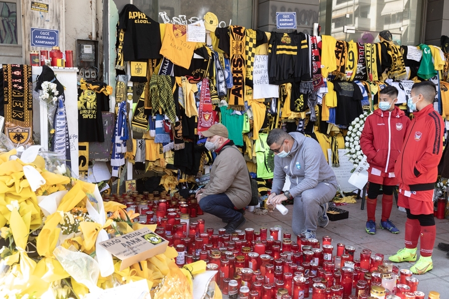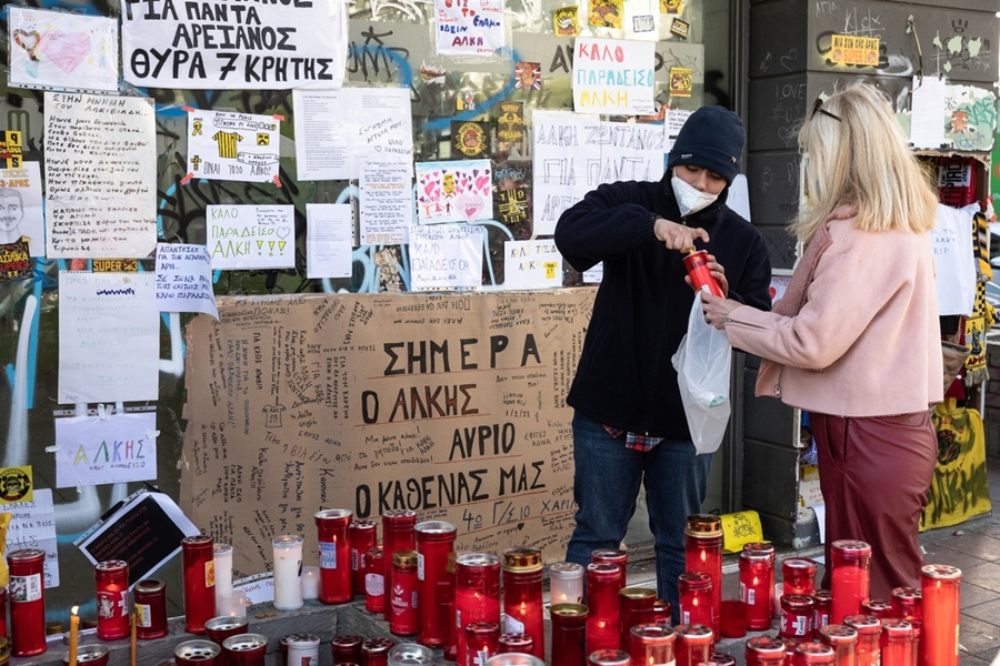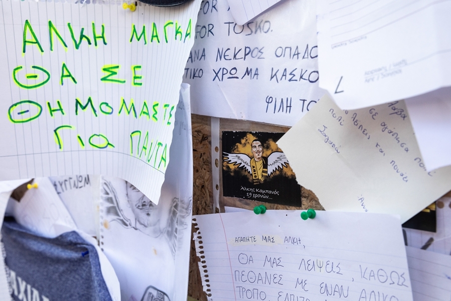 Στο σημείο της στυγερής δολοφονίας του 19χρονου Άλκη Καμπανού συνεχίζουν να δίνουν «το παρών» Θεσσαλονικείς.