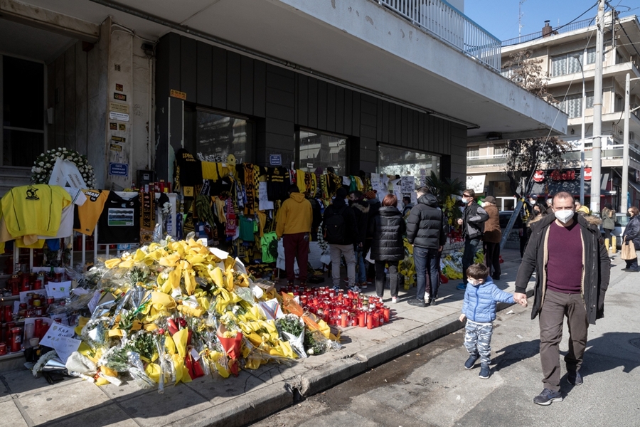 Κόσμος κάθε ηλικίας διέρχεται από τη Χαριλάου και αφήνει το στίγμα του προκειμένου να εκφράζει τη θλίψη, την οργή, αλλά και τη συμπαράστασή του στην οικογένεια του νεαρού που χάθηκε με τον χειρότερο τρόπο.