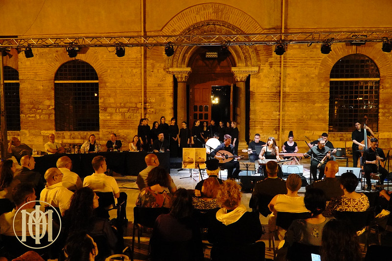 Στο πλαίσιο αυτό, δυο μουσικά σχήματα υπό την καλλιτεχνική επιμέλεια του Γεωργίου Πατρώνα, η Ο.Κ.Ε.Μ Ορχήστρα κοσμικής Ελληνικής Μουσικής της Ερευνητικής Ομάδας «Ευδρομούντες» του Πανεπιστημίου Μακεδονίας και το Γυναικείο Φωνητικό Σύνολο «Ευνεάνιδες» έδωσαν στην σκέψη μας άλλο ρυθμό.., αγγίζοντας την ψυχή μας, μπροστά στην επιβλητική εικόνα του Ιερού Ναού της του Θεού Σοφίας που έπαιζε με το ΦΩΣ και τις σκιές του Βυζαντίου.