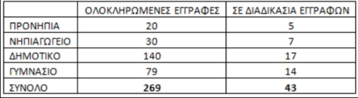 Στο πλαίσιο αυτό, ο αριθμός των παιδιών τα οποία έχουν εγγραφεί στο σχολείο  παρουσιάζεται ως εξής: