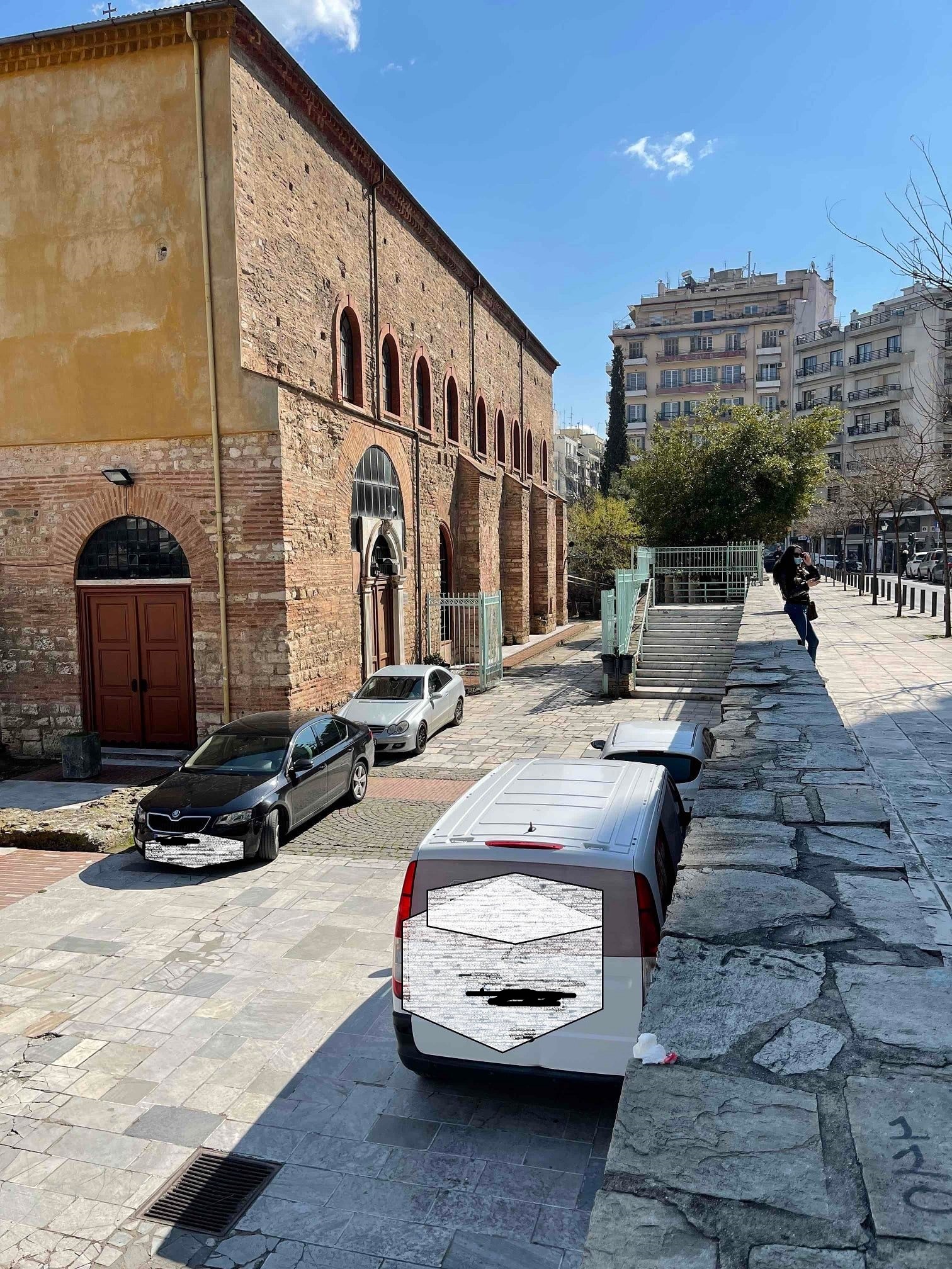 «Το πρόβλημα της στάθμευσης αυτοκινήτων στον αύλειο χώρο δύο εμβληματικών βυζαντινών ναών της Θεσσαλονίκης, στον ναό του Πολιούχου Αγίου Δημητρίου και στον καθεδρικό ναό της του Θεού Σοφίας, είναι από καιρού γνωστό στην Υπηρεσία. Καθημερινά και κυρίως τις Κυριακές και κατά τη διάρκεια Ιερών Μυστηρίων ο περιβάλλων χώρος των ναών μετατρέπεται σε υπαίθριο χώρο στάθμευσης αυτοκινήτων.