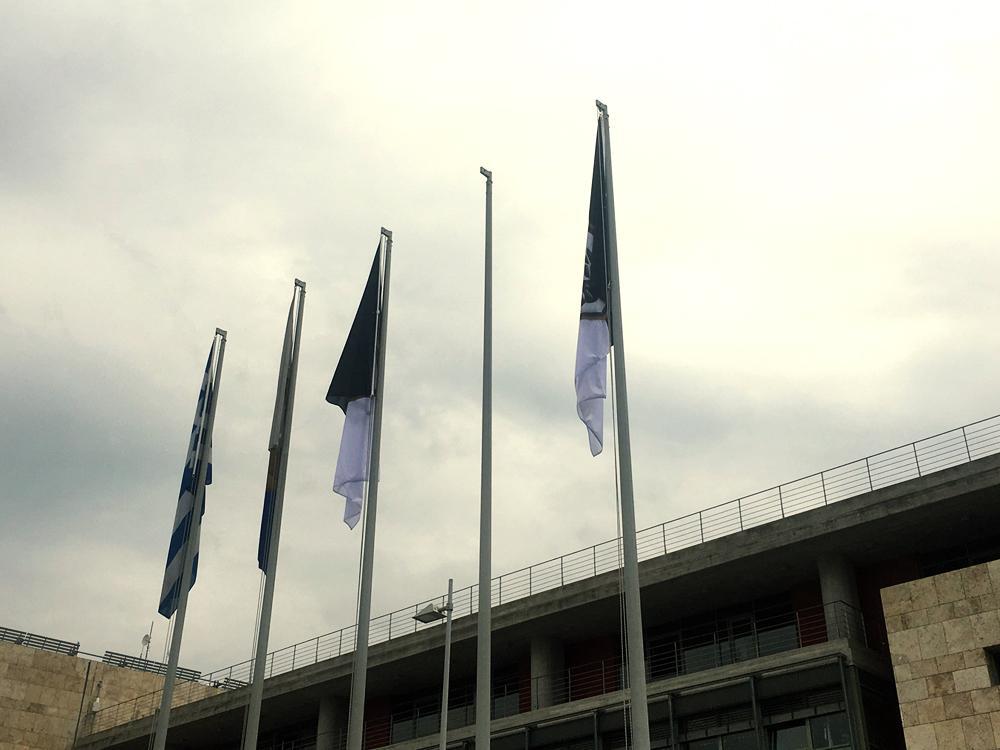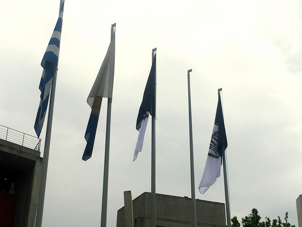 Δύο σημαίες του ΠΑΟΚ έχουν υψωθεί έξω από το δημαρχείο Θεσσαλονίκης