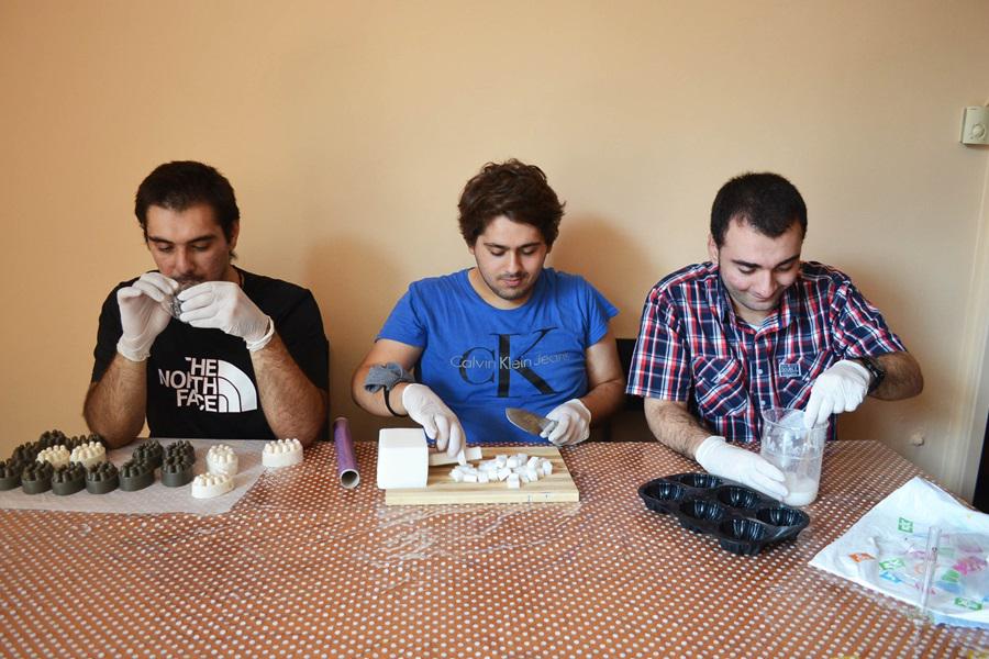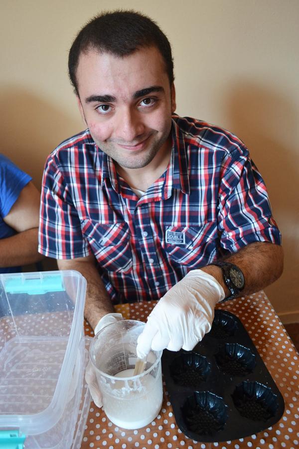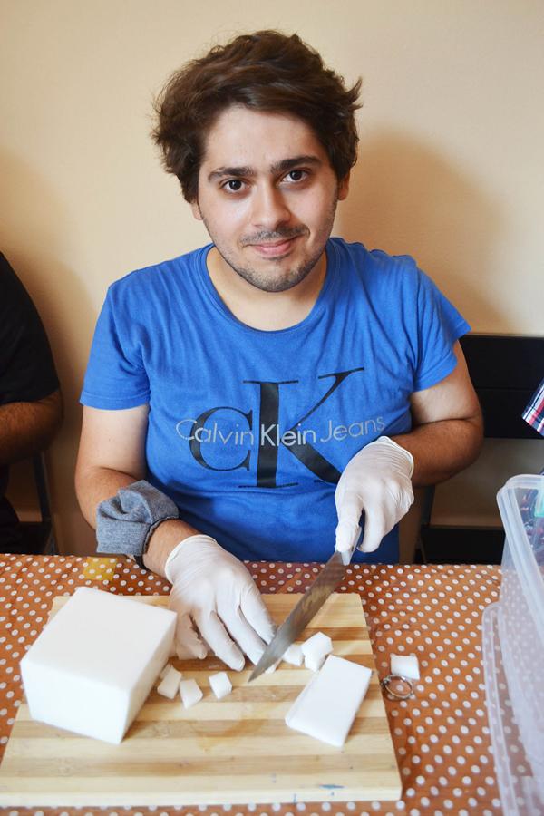 «Eίναι πολύ ωραία, μου αρέσει που αρχίζω να εργάζομαι και να ασχολούμαι με τα σαπούνια!», απαντά γεμάτος χαρά ο Πάνος.