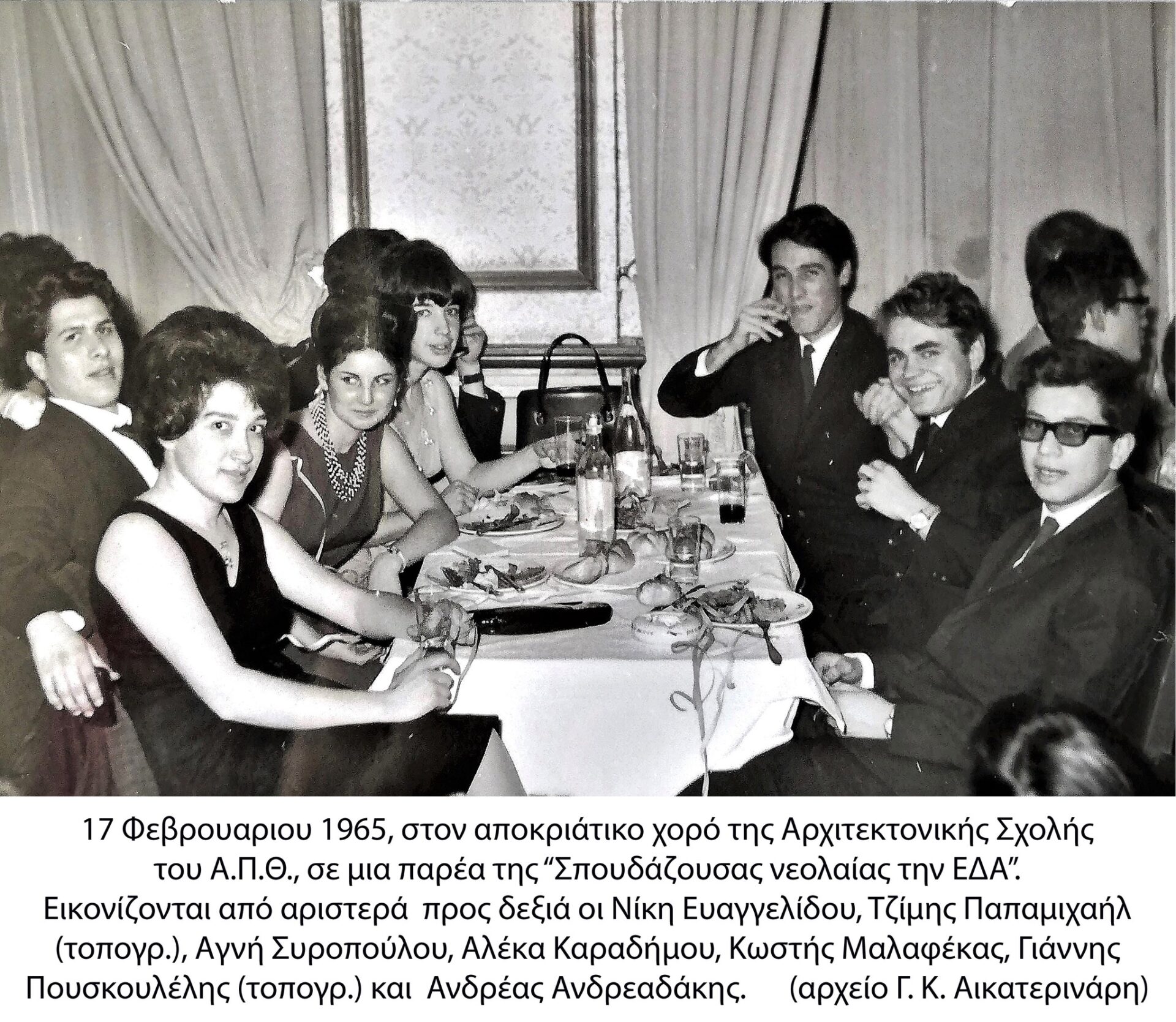 Από τα πολλά που άλλαξαν, μια ανάμνηση πάντοτε μου έρχεται στο μυαλό όταν μιλούμε για την χούντα. Με την επιστροφή στα μαθήματα μετά από την Δευτέρα του Θωμά, η οικειότητα με τους χώρους των σπουδών μας έχει εξαφανιστεί. Πριν, μπορούσες να μπαίνεις μέσα στα φωτισμένα κτίρια όποια ώρα της μέρας ή της νύχτας, από ορθάνοιχτες πόρτες και παράθυρα, και να δουλεύεις μόνος ή με παρέα, σωπαίνοντας, μιλώντας, τραγουδώντας… Όπως στο σπίτι σου. Τώρα τα φώτα σβήνουν, τα παράθυρα του ισογείου κλειδώθηκαν, οι πόρτες έχουν κλείσει και μια μόνον είναι ανοιχτή, η κεντρική. Οι χώροι έχουν γεμίσει θυρωρούς γνωστούς και άγνωστους , που στέκουν αμίλητοι σε κάθε γωνία, πέρασμα, ασανσέρ. Στο κάποτε θορυβώδες κυλικείο με τις έντονες συζητήσεις, επικρατεί σιγή.