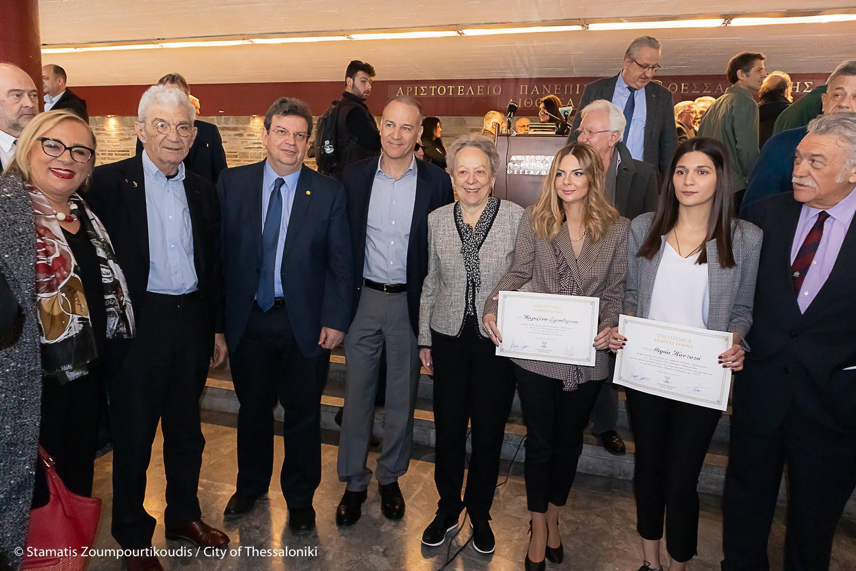 Στο τέλος της εκδήλωσης έγινε απονομή των πρώτων υποτροφιών “Αλμπέρτος Ναρ” και “Ανδρέας Σεφιχά”, οι οποίες χορηγούνται από την Ισραηλιτική Κοινότητα Θεσσαλονίκης (ΙΣΡ) μέσω της Έδρας Εβραϊκών Σπουδών του ΑΠΘ. Φοιτήτριες – υπότροφοι είναι οι Μαρία Πανταζή, προπτυχιακή φοιτήτρια του Τμήματος Ιστορίας και Αρχαιολογίας της Φιλοσοφικής Σχολής του ΑΠΘ και η Πολυξένη Ελευθερίου, υποψήφια Διδάκτορας του Τμήματος Φιλοσοφίας και Παιδαγωγικής της Φιλοσοφικής Σχολής του ΑΠΘ.