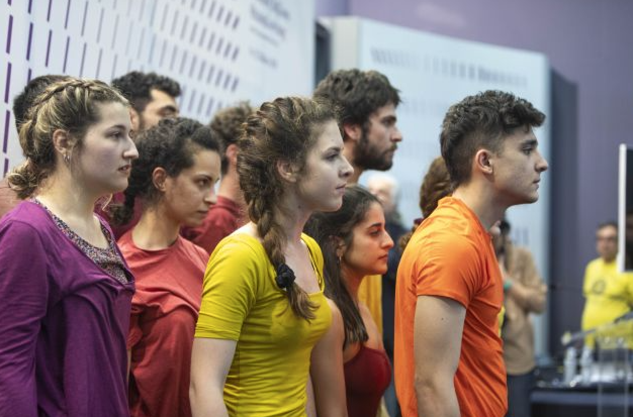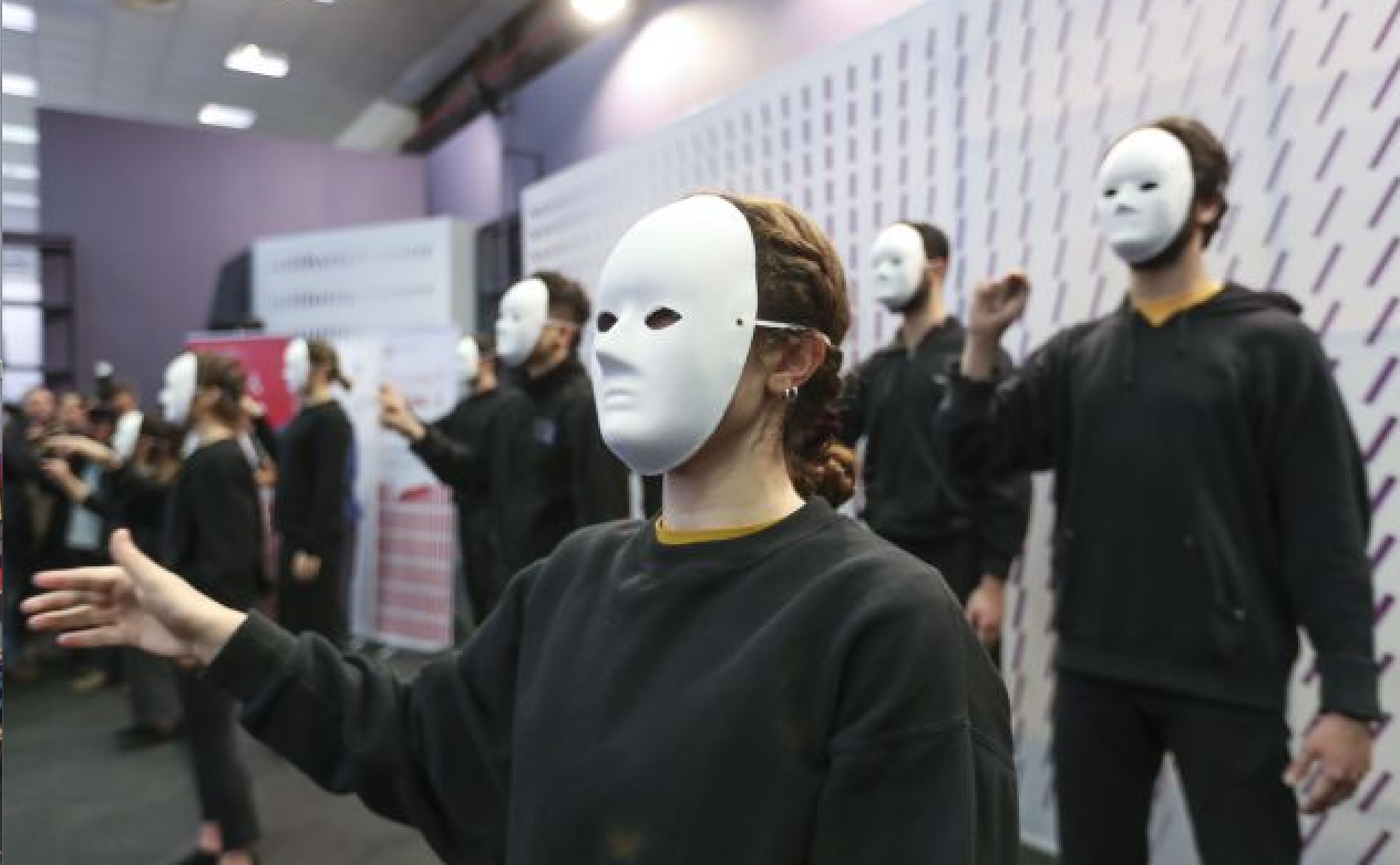 Τα εγκαίνια της 16ης Διεθνούς Έκθεσης Βιβλίου άρχισαν εντυπωσιακά με ομάδα 10 σπουδαστών της δραματικής σχολής του ΚΘΒΕ οι οποίοι συμμετείχαν σε χορο-θεατρικό δρώμενο λόγου (βασισμένο σε αποσπάσματα κειμένων από το έργο του Ανδρέα Φραγκια “Το πλήθος” και του Γάλλου συγγραφέα Ερίκ Βυϊγιάρ (θα βρίσκεται μεθαύριο Σάββατο στην έκθεση προκειμένου να συζητήσει για την έννοια του πλήθους στη λογοτεχνία με αφορμή την πρόσφατη έκδοση του βιβλίου του με τίτλο “14η Ιουλίου”) .