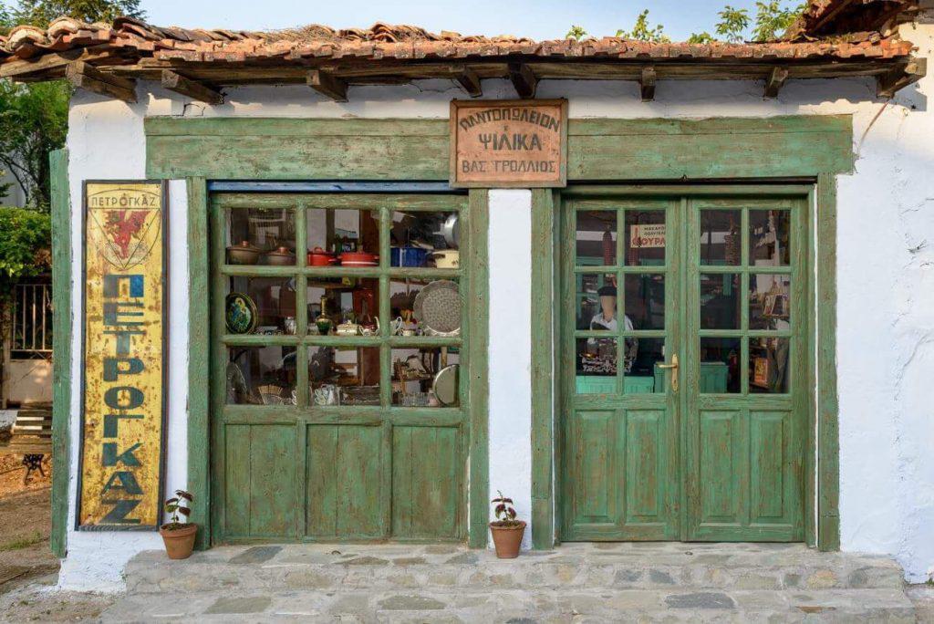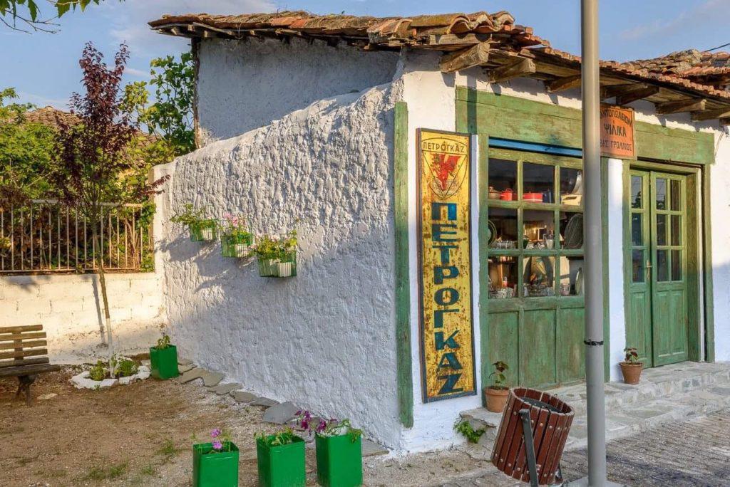 Ο ξύλινος πάγκος και οι προθήκες, η παλιά ζυγαριά και οι κασέλες, τα κουτιά με τις κλωστές και τα κουμπάκια, οι νταμιτζάνες και τα μπουκάλια, οι παλιές μαθητικές τσάντες και κάθε λογής κουτιά και συσκευασίες προϊόντων, αλλά και πολλές σπάνιες μεταλλικές διαφημιστικές πινακίδες, τοποθετήθηκαν στο χώρο του παλιού παντοπωλείου για να ξυπνούν νοσταλγικές μνήμες στους παλαιότερους και για να «αφηγούνται» σελίδες της νεότερης ιστορίας στους νεότερους.