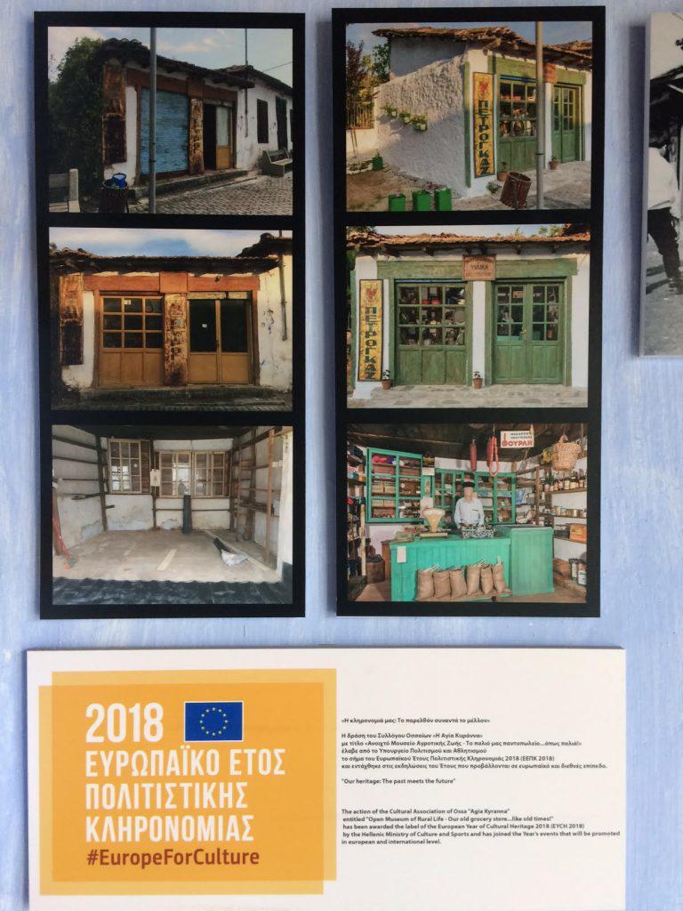 Όλοι αυτοί οι επισκέψιμοι χώροι συνθέτουν ένα «Ανοιχτό Μουσείο Αγροτικής Ζωής», πρότυπο και μοναδικό για όλη την περιοχή. Για τον λόγο αυτό, το Υπουργείο Πολιτισμού και Αθλητισμού παραχώρησε στον Σύλλογο Οσσαίων το σήμα του Ευρωπαϊκού Έτους Πολιτιστικής Κληρονομιάς 2018, ως μέρος των εκδηλώσεων και δράσεων που πραγματοποιούνται το έτος αυτό σε όλη την Ευρώπη.