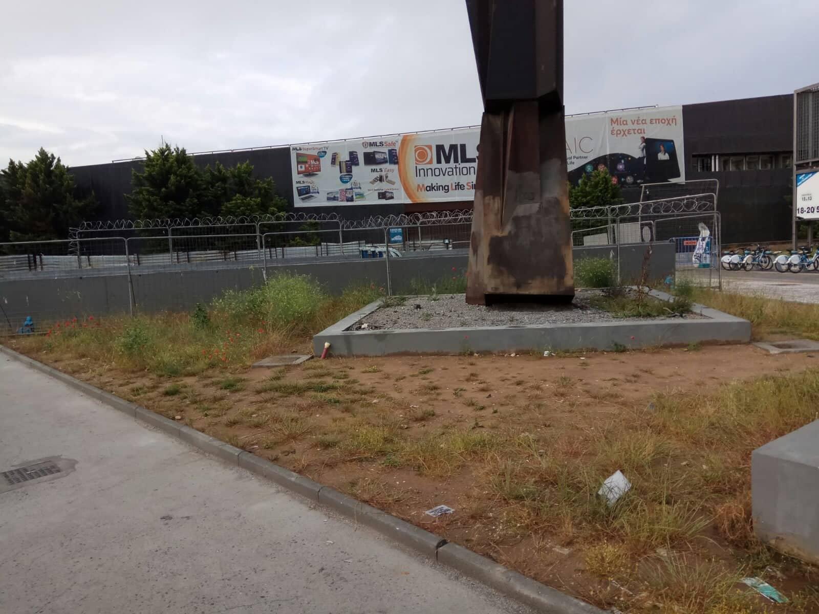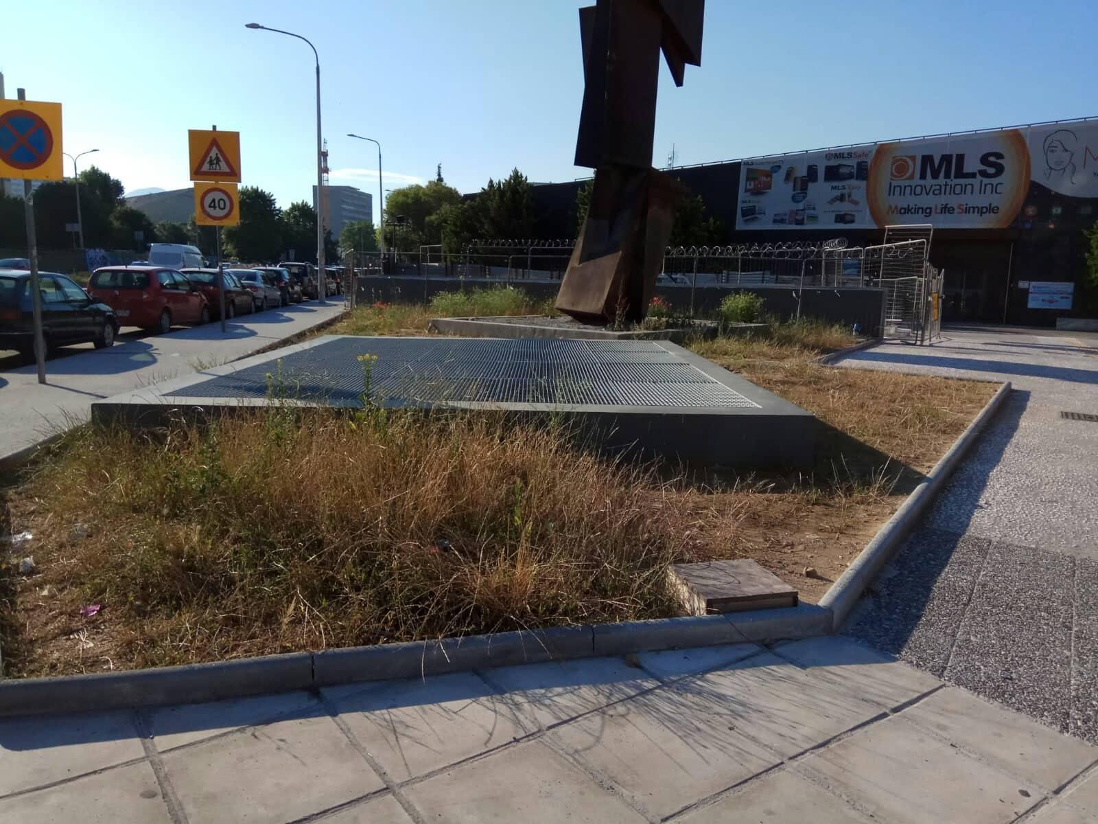 Βόρεια πύλη της ΔΕΘ. Μπροστά στο γλυπτό του Ζογγολόπουλου. Η εικόνα μοιάζει με πόλη που εγκαταλείφθηκε. Άλλο ένα δείγμα της παραίτησης της διοίκησης του δήμου Θεσσαλονίκης εδώ και πάρα πολύ καιρό. Όπως συμβαίνει με τα περισσότερα παρτέρια της πόλης. Μόνο που εδώ είναι η βιτρίνα της. Σημείο που περνούν καθημερινά χιλιάδες τουρίστες. Αν δεν μπορεί, που φαίνεται ότι δεν μπορεί το αρμόδιο τμήμα του δήμου να τα συντηρεί σε μια αξιοπρεπή κατάσταση ας ζητήσει τη βοήθεια εθελοντών. Είμαστε σίγουροι ότι θα αναλάβουν να τα φροντίζουν εκείνοι.