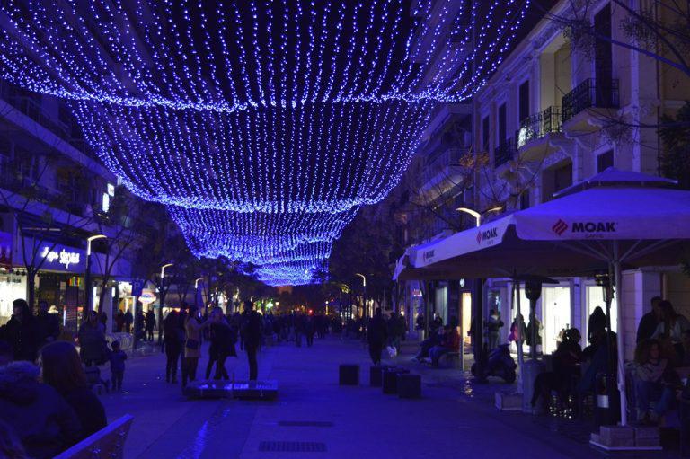 O “μπλε ουρανός” στον πεζόδρομο της Αγίας Σοφίας, ο οποίος διατηρήθηκε και στον φετινό εορταστικό διάκοσμο του κέντρου, είναι ίσως ένα από τα σημεία στα οποία συγκλίνουν οι απόψεις των Θεσσαλονικέων ως προς τον χριστουγεννιάτικο στολισμό της πόλης.