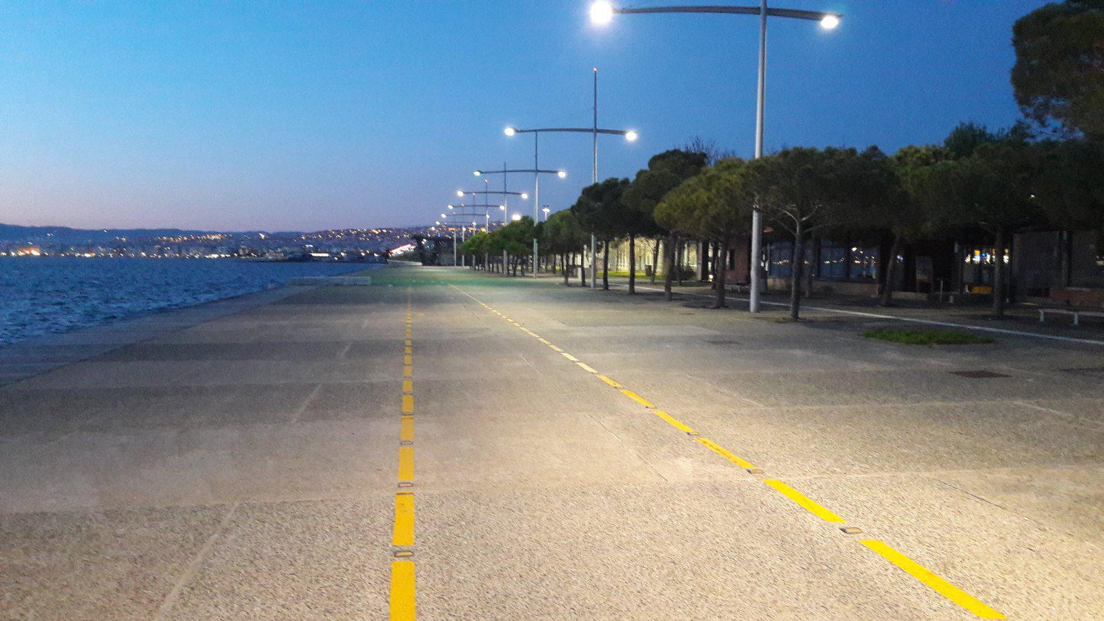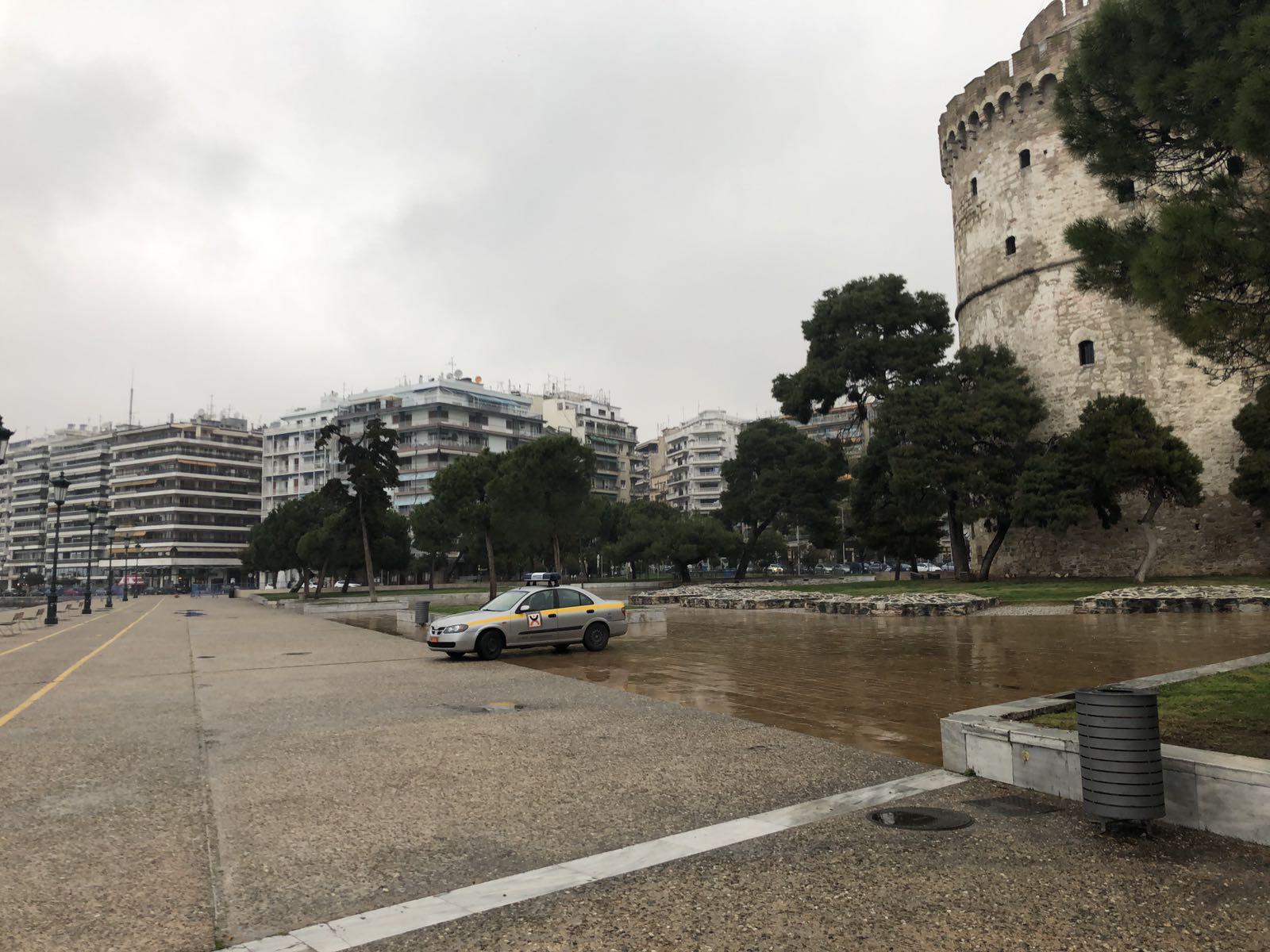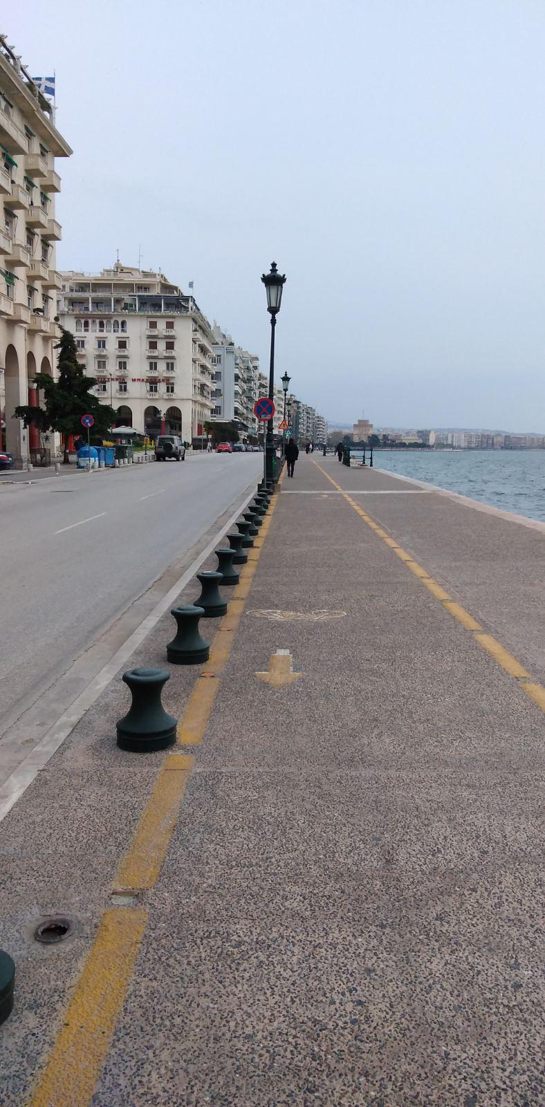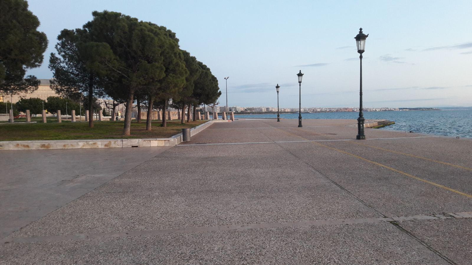 Μπορεί η άνοιξη να έχει μπει για τα καλά πια στην πόλη, παρά τις πρώτες βροχές, όμως η άλλοτε γεμάτη τέτοια εποχή Θεσσαλονίκη μένει σπίτι, με τις κεντρικές αρτηρίες της άδειες και το ορόσημο της Νέας Παραλίας με ελάχιστες ψυχές να κυκλοφορούν.