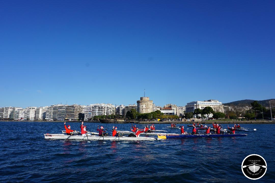 «Έχει γίνει για μας έθιμο, λίγες μέρες πριν από τα Χριστούγεννα, να κωπηλατούμε στον Θερμαϊκό ντυμένοι αγιοβασιλιάτικα, για να ξεσηκώσουμε τους περαστικούς, να μεταφέρουμε χαρά, να προσφέρουμε μια όμορφη εικόνα, αλλά και να στηρίξουμε έναν φιλανθρωπικό σύλλογο ή ένα εθελοντικό σωματείο», σημειώνει ο παγκόσμιος πρωταθλητής κλασικής και παράκτιας κωπηλασίας, πρωταθλητής Ευρώπης, υπεύθυνος του τμήματος παράκτιας κωπηλασίας ενηλίκων / Coastal Rowing Club Thessaloniki, Νίκος Γκουντούλας.