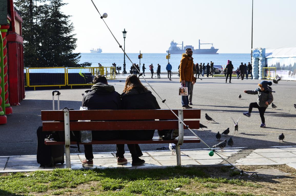 Τσουχτερό κρύο, φιλιά ανθρώπων που συναντιούνται τυχαία, λίστες με ψώνια, ουρές στα ταμεία, καφέδες στα κλεφτά και λαμπιόνια που αναβοσβήνουν. Χριστούγεννα στη Θεσσαλονίκη με το φακό της Σοφίας Λαμπρινοπούλου.