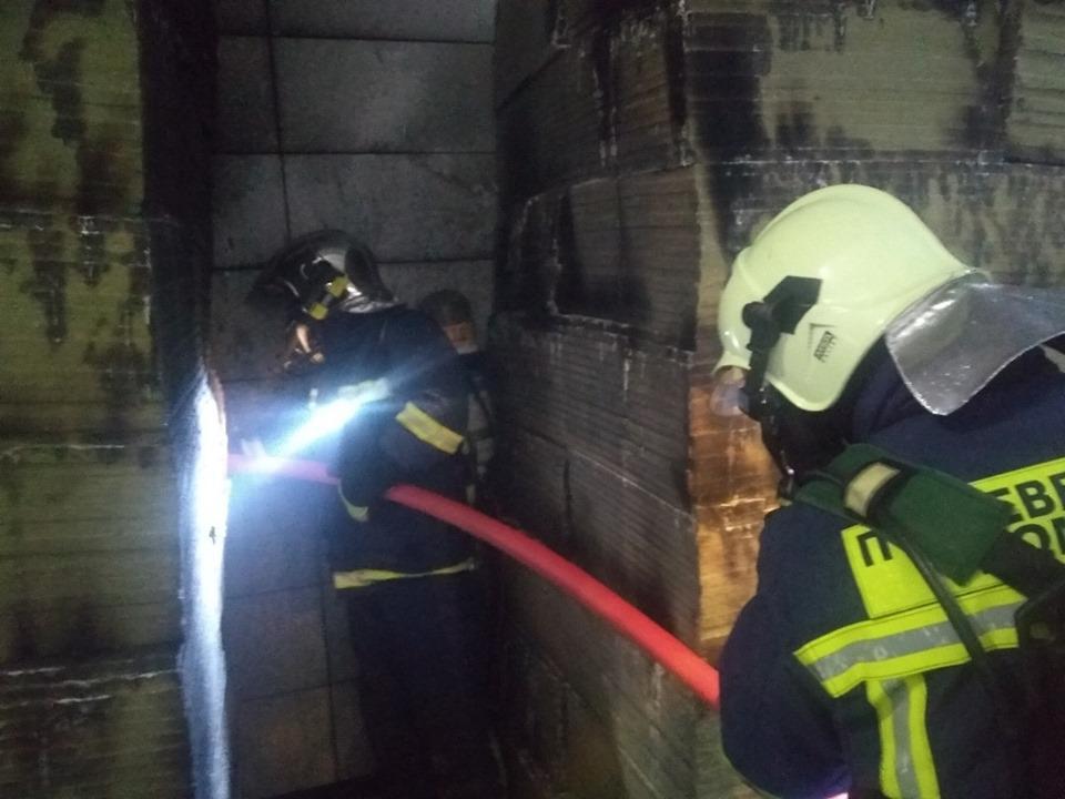 Για την κατάσβεση της, επιχείρησαν επτά πυροσβέστες, ενώ προκλήθηκαν περιορισμένης έκτασης ζημιές σε παλέτες και συσκευασίες.