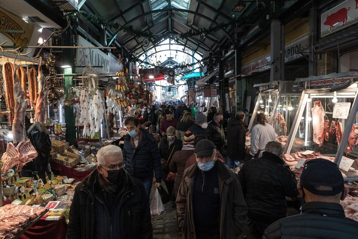 Snapshots from Vlali Market (Kapani) on Christmas Eve in Thessaloniki, Greece on December 24, 2021. / Στιγμιότυπα από την Αγορά Βλάλη (Καπάνι) την παραμονή Χριστουγέννων, Θεσσαλονίκη, Ελλάδα, 24 Δεκεμβρίου 2021.