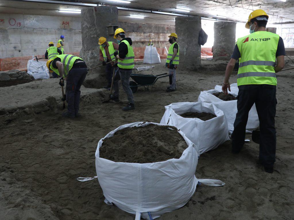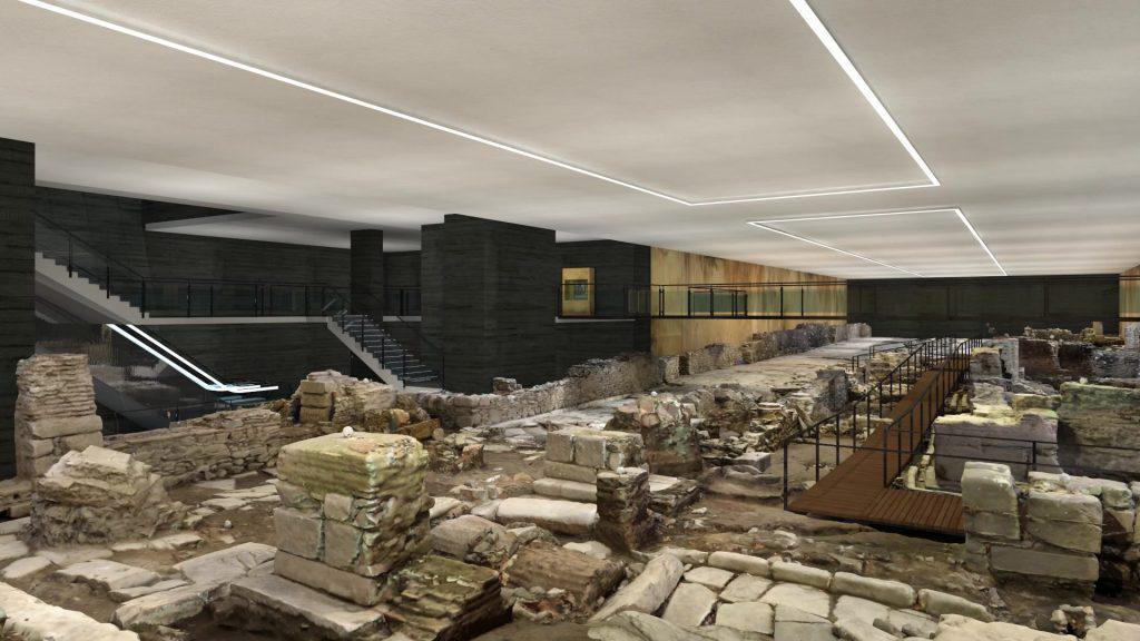 Κατά την κατασκευή του, η αρχαιολογική ανασκαφή που προηγήθηκε αποκάλυψε τμήμα της πολεοδομικής οργάνωσης της Βυζαντινής πόλης σημαντικής αρχαιολογικής αξίας. Τα υφιστάμενα αρχαιολογικά ευρήματα θα επανατοποθετηθούν σχεδόν στο σύνολό τους δηλ σε ποσοστό περίπου 92%, οριζοντιογραφικά και υψομετρικά στην ίδια ακριβώς θέση που βρέθηκαν. Για να επιτευχθεί αυτό, η πλάκα του επιπέδου -1 τοποθετείται σε υψόμετρο χαμηλότερο από την συμβατικά προβλεπόμενη θέση της.