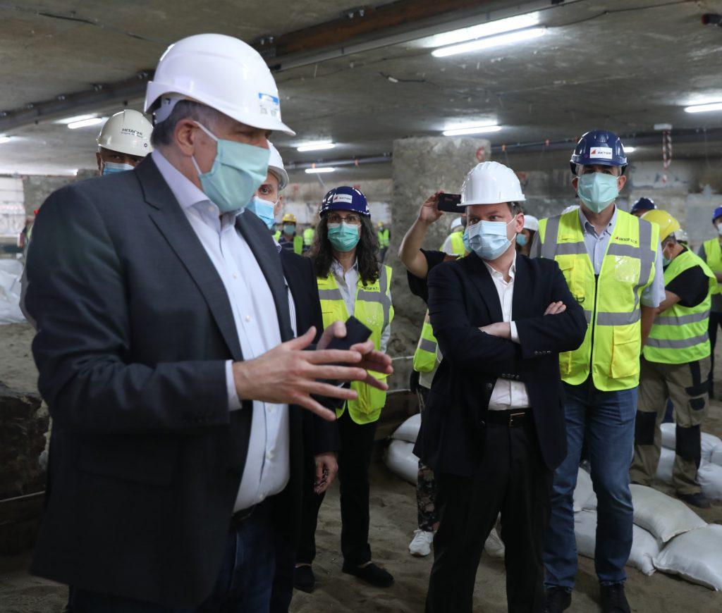 Ο υπουργός κατέβηκε στον σταθμό Βενιζέλου, όπου διαπίστωσε ότι έχει ξεκινήσει η απομάκρυνση της επίχωσης και τόνισε πως αυτό σημαίνει ότι θα εφαρμοστεί η λύση «και Μετρό και αρχαία», με την απομάκρυνση και επανατοποθέτηση αρχαιοτήτων.